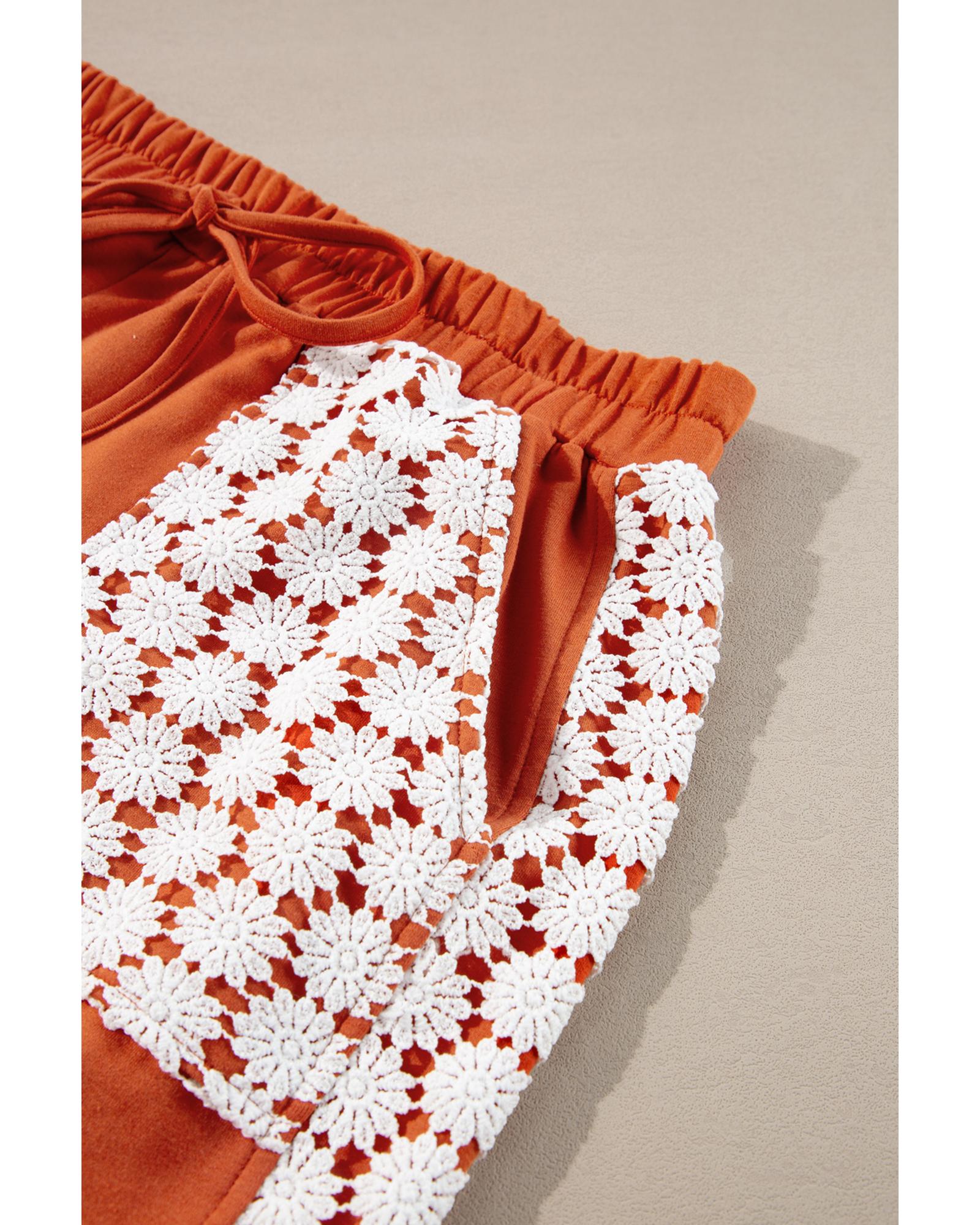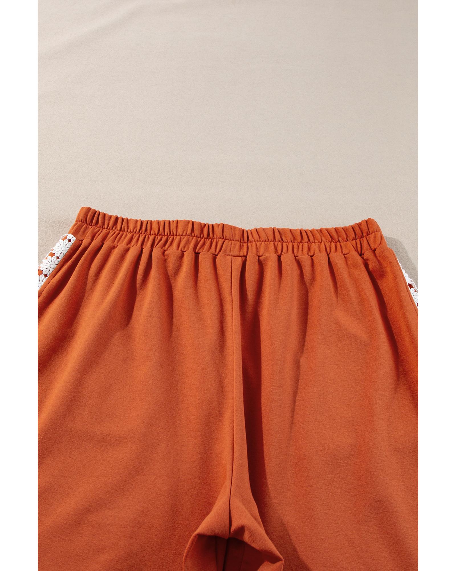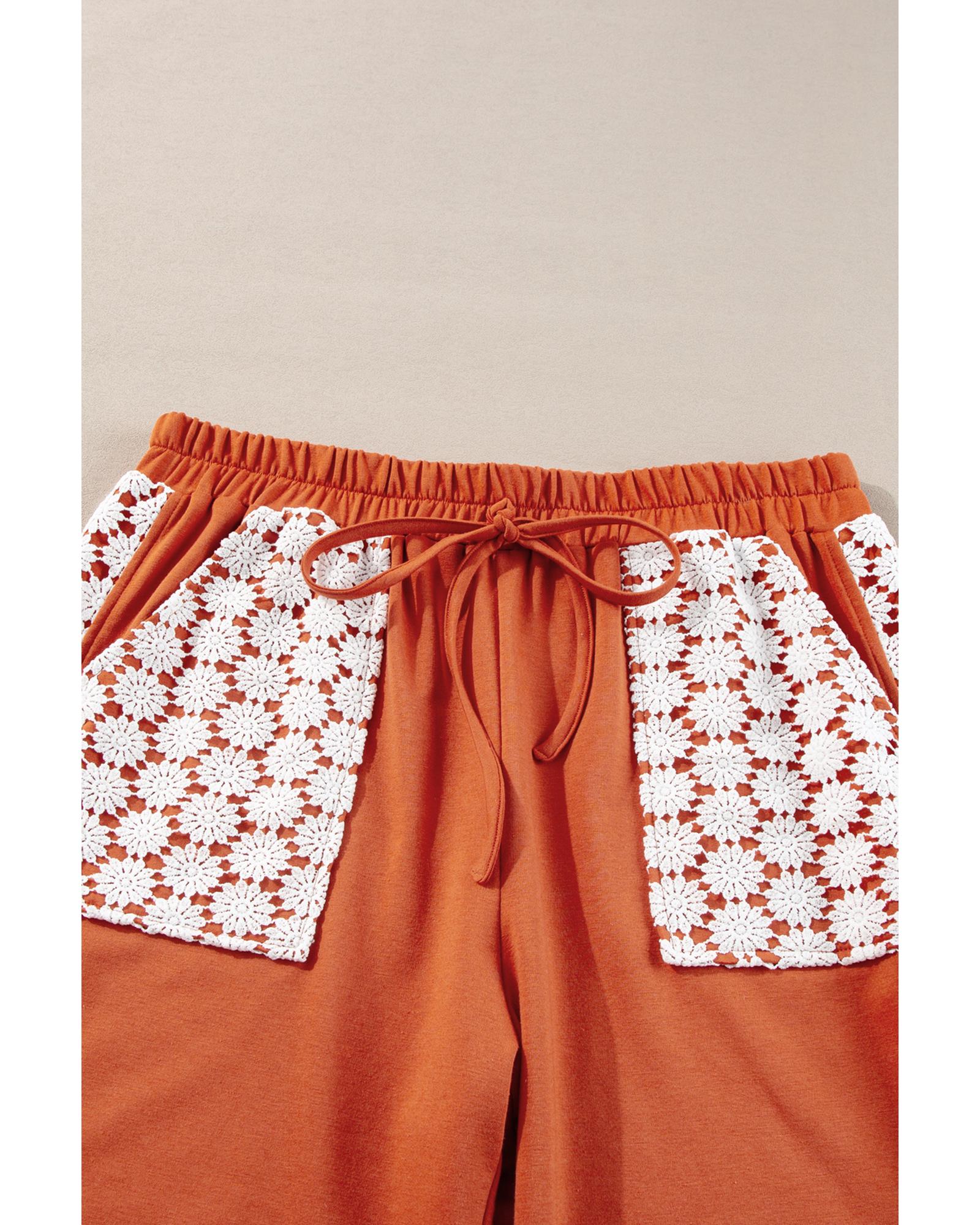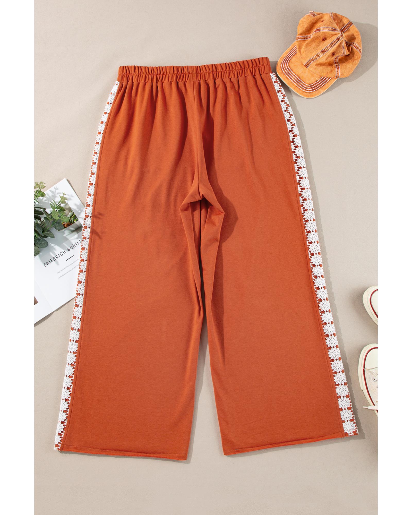 Azura Exchange Gold Flame Plus Size Floral Crochet Patch Drawstring Wide Leg Pants – 2X