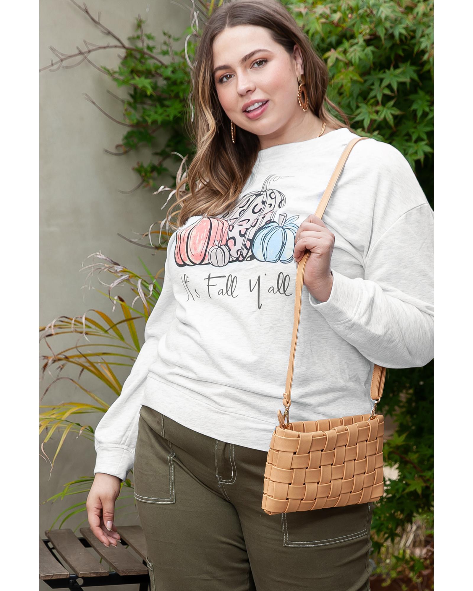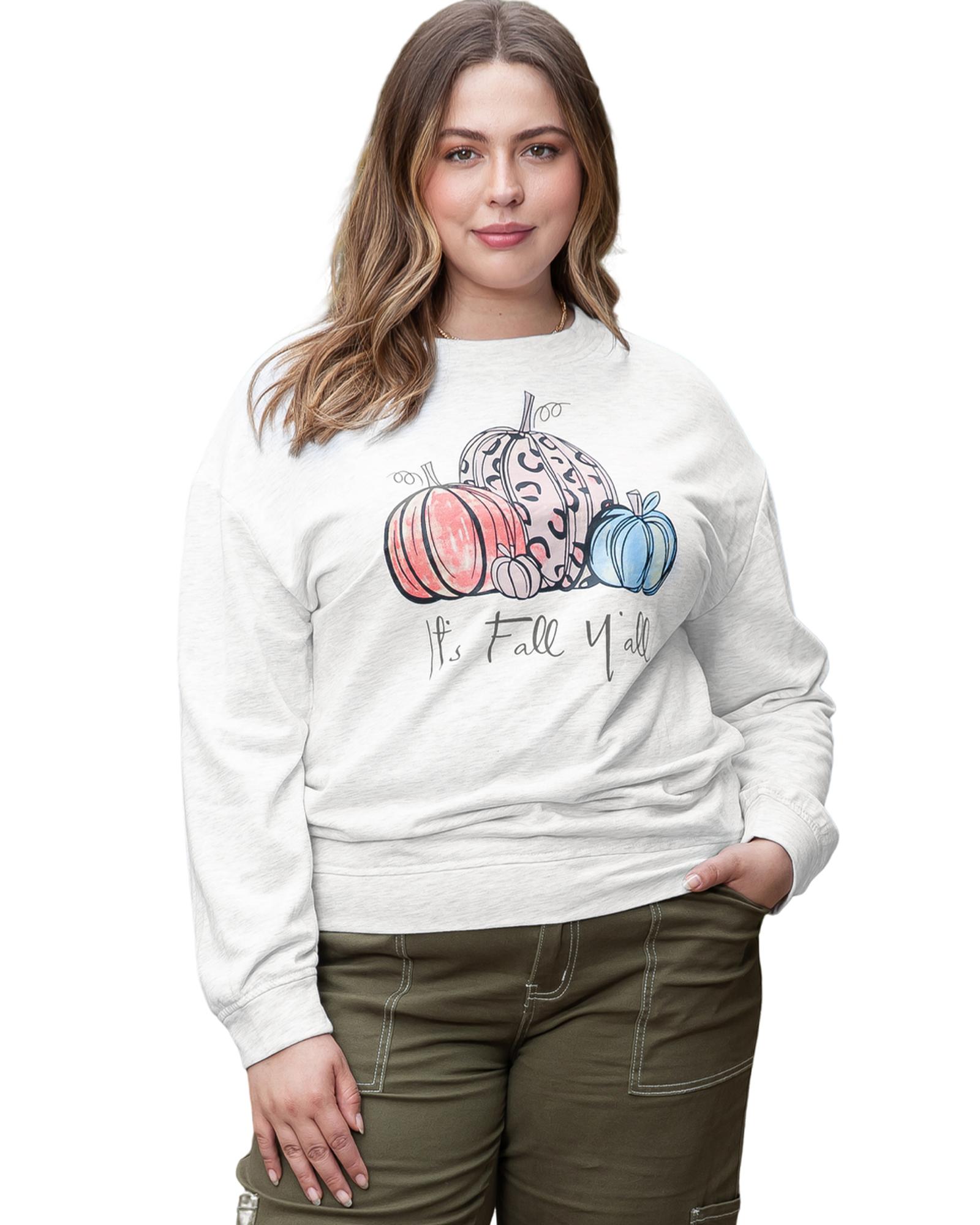 - size pullover sweatshirt for the coming autumn Delicate pumpkin patterns convey the joy of harvest Versatile sweatshirt with a round neck long sleeves and relaxed cut Perfect for school parties or other occasions Available in plus sizes for a flattering fit
