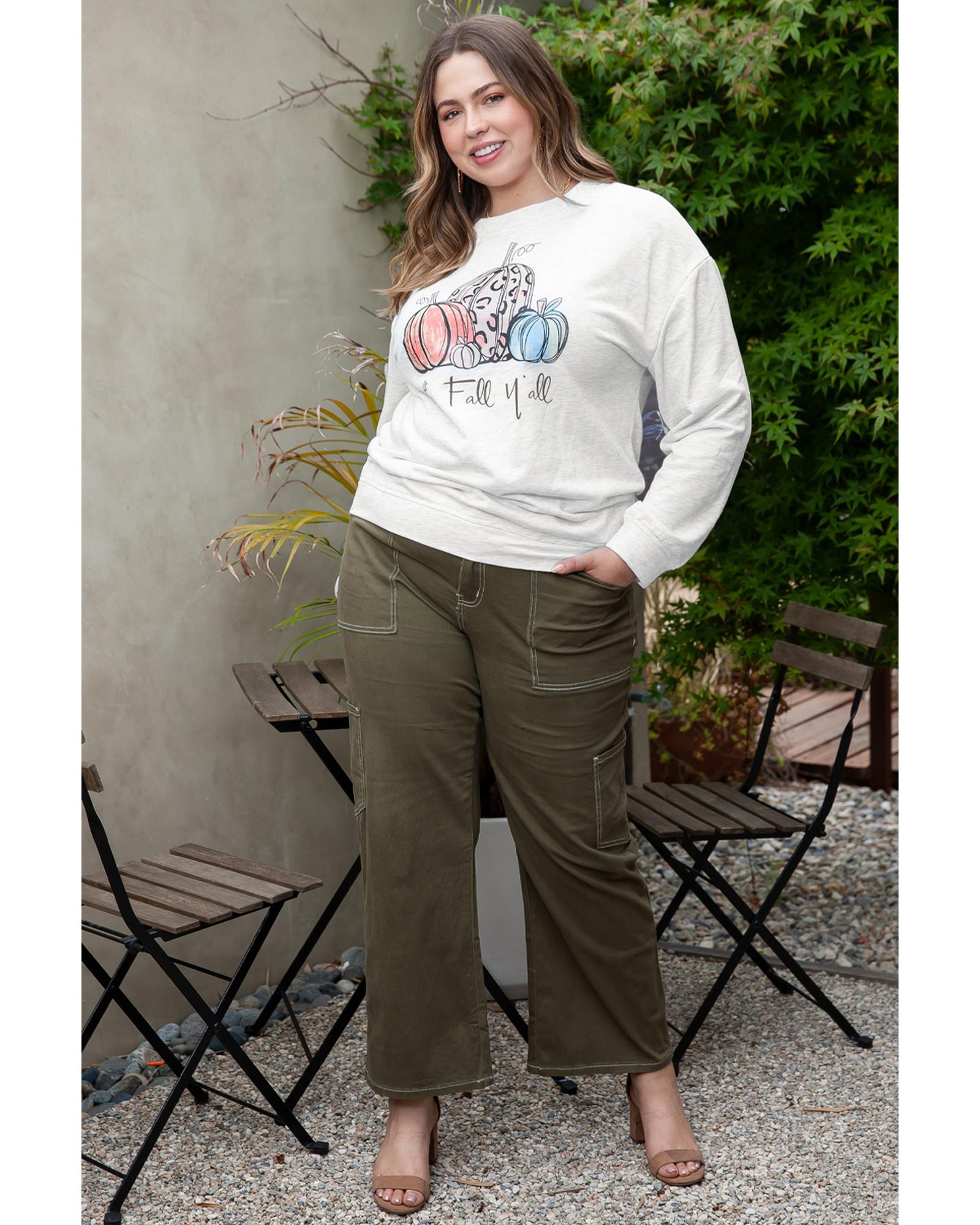 Azura Exchange Gray Pumpkin Graphic Plus Size Pullover Sweatshirt – 2X