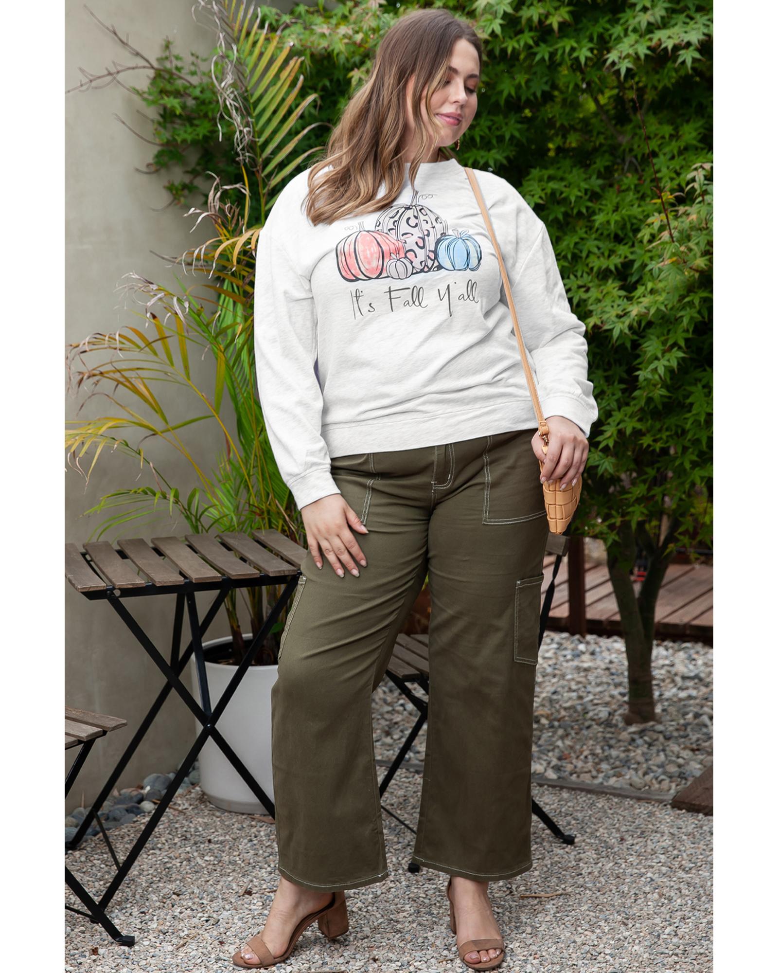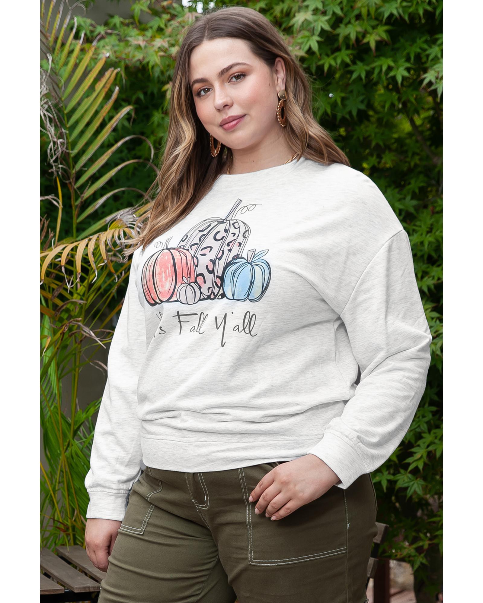 Azura Exchange Gray Pumpkin Graphic Plus Size Pullover Sweatshirt – 3X