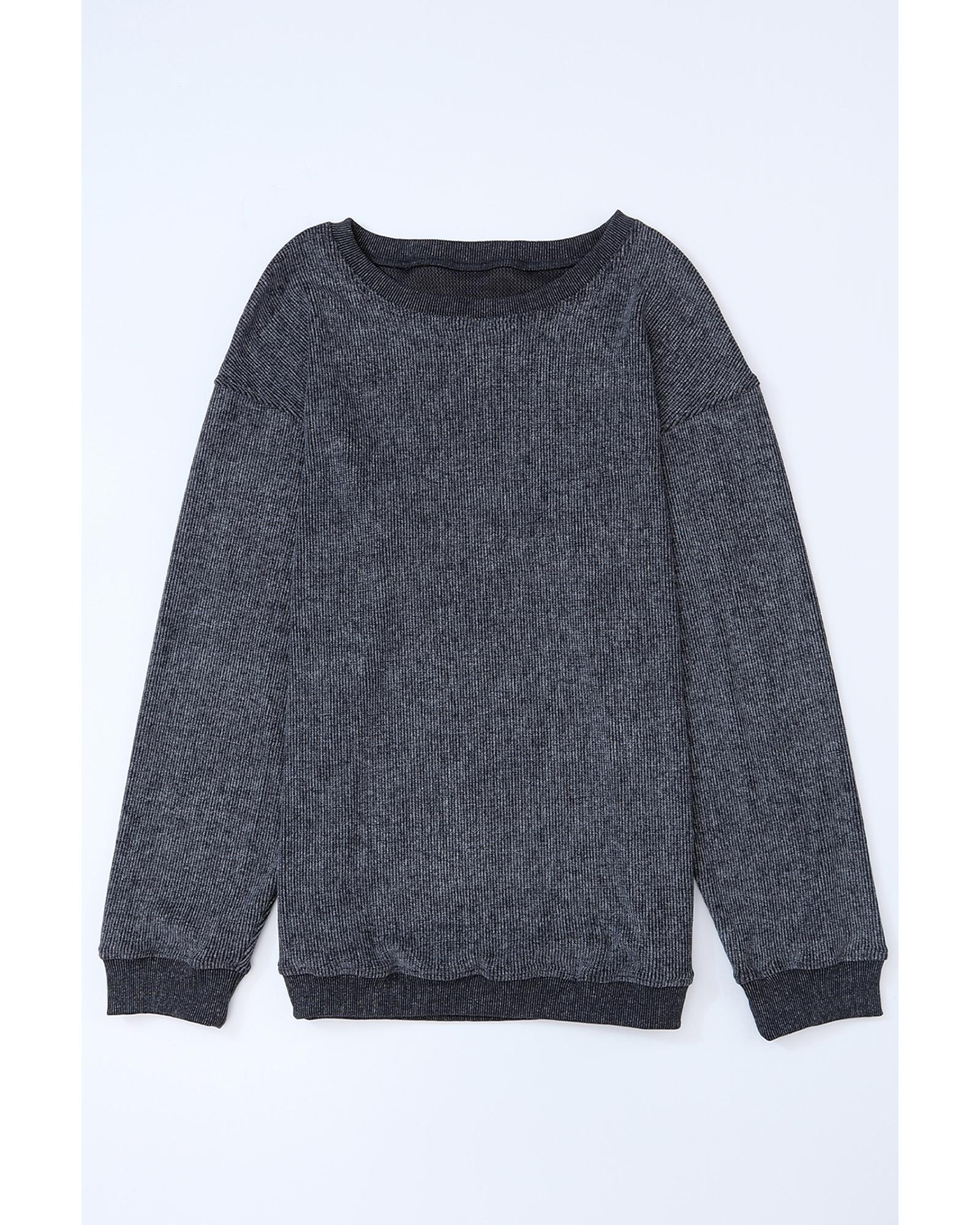Azura Exchange Gray Ribbed Knit Round Neck Pullover Sweatshirt - S Original price was: $64.99.Current price is: $34.99.