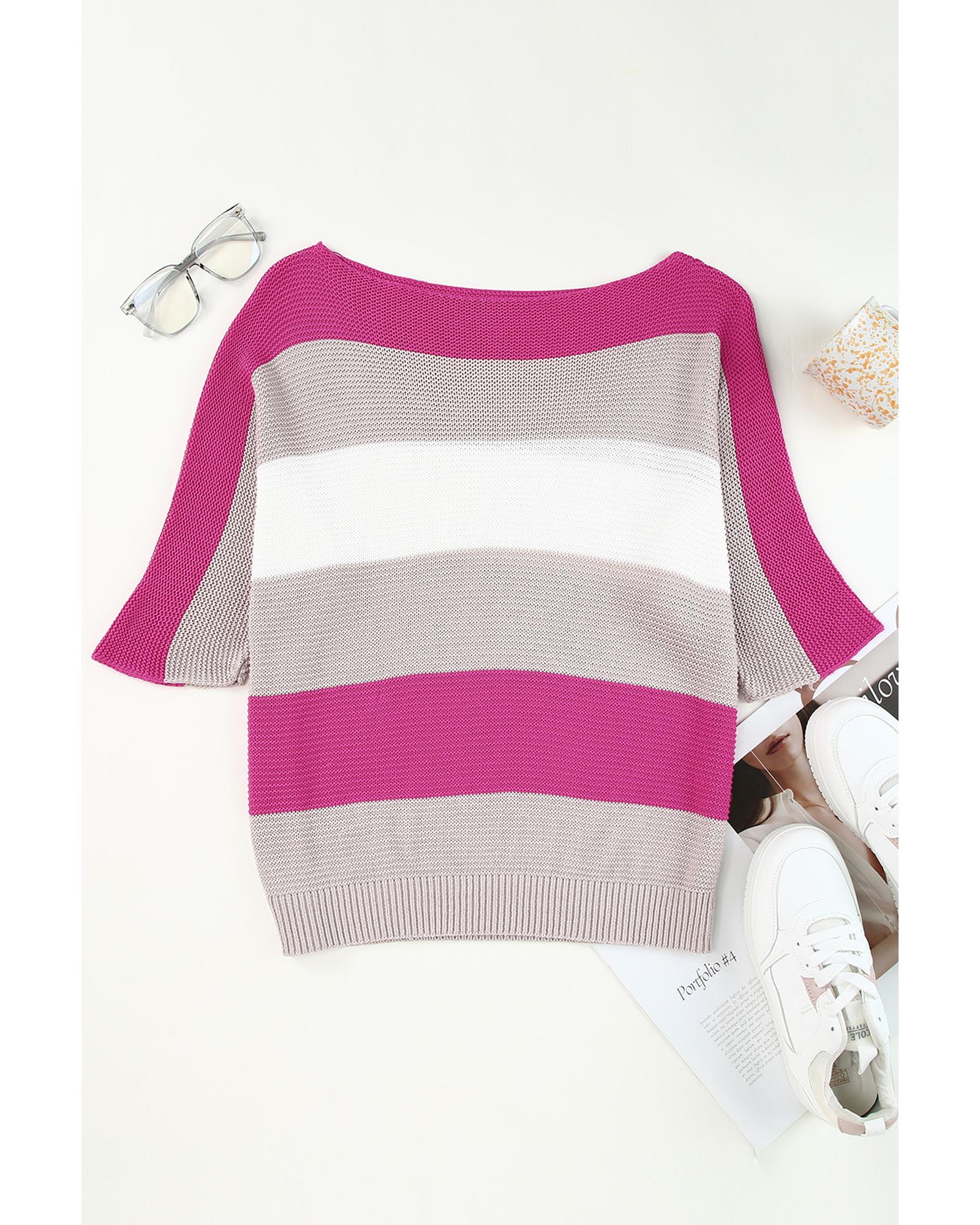 Azura Exchange Half Sleeve Contrast Stripe Knit Sweater – L