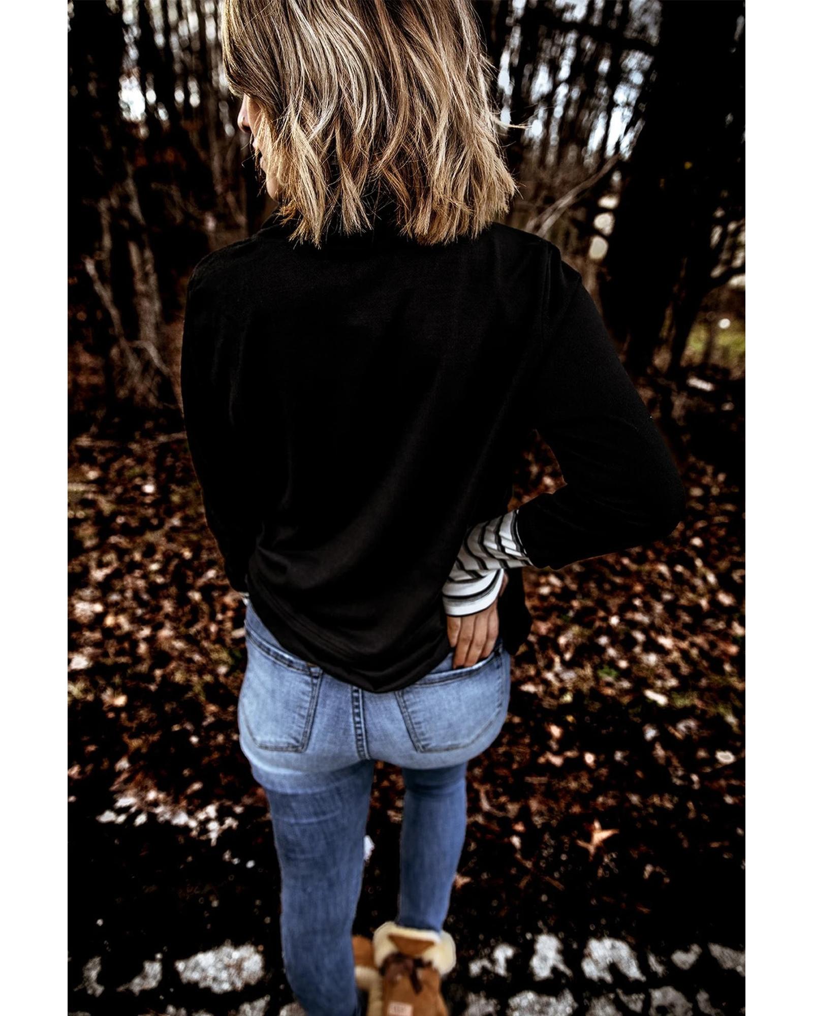 • Stylish and comfortable Striped Splicing High Neck Sweatshirt