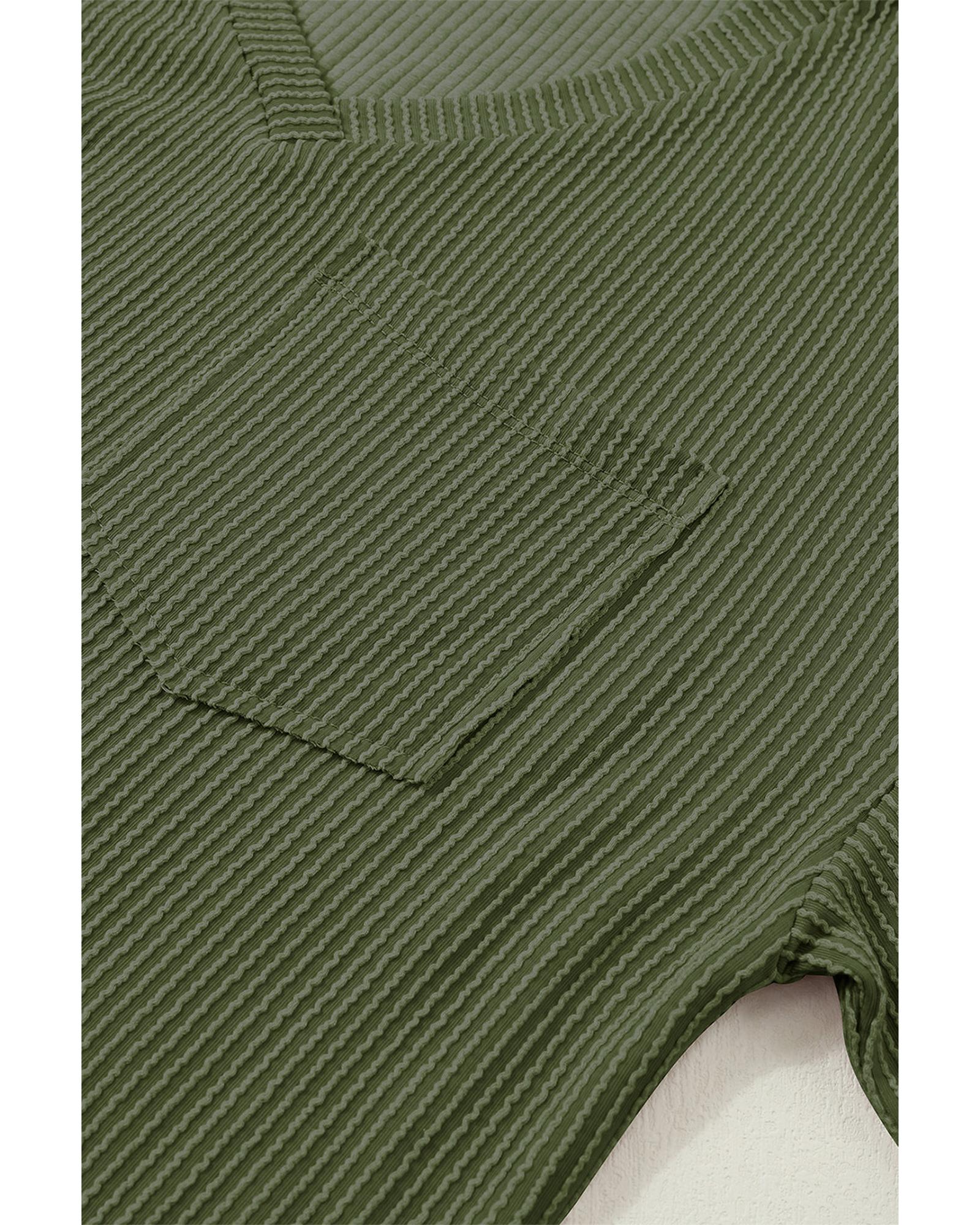 Azura Exchange Jungle Green Corded V Neck Chest Pocket Loose T-shirt – L