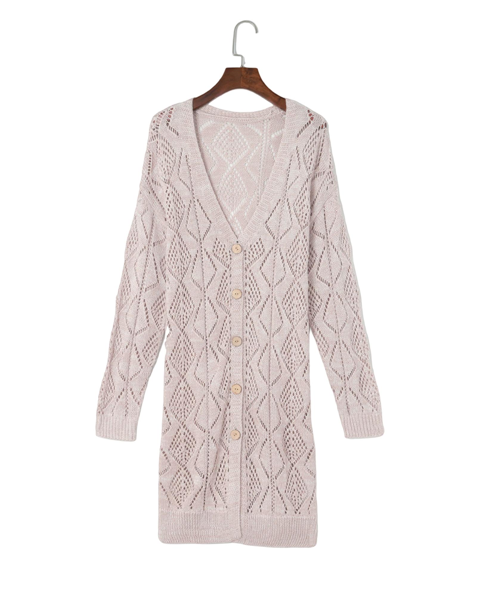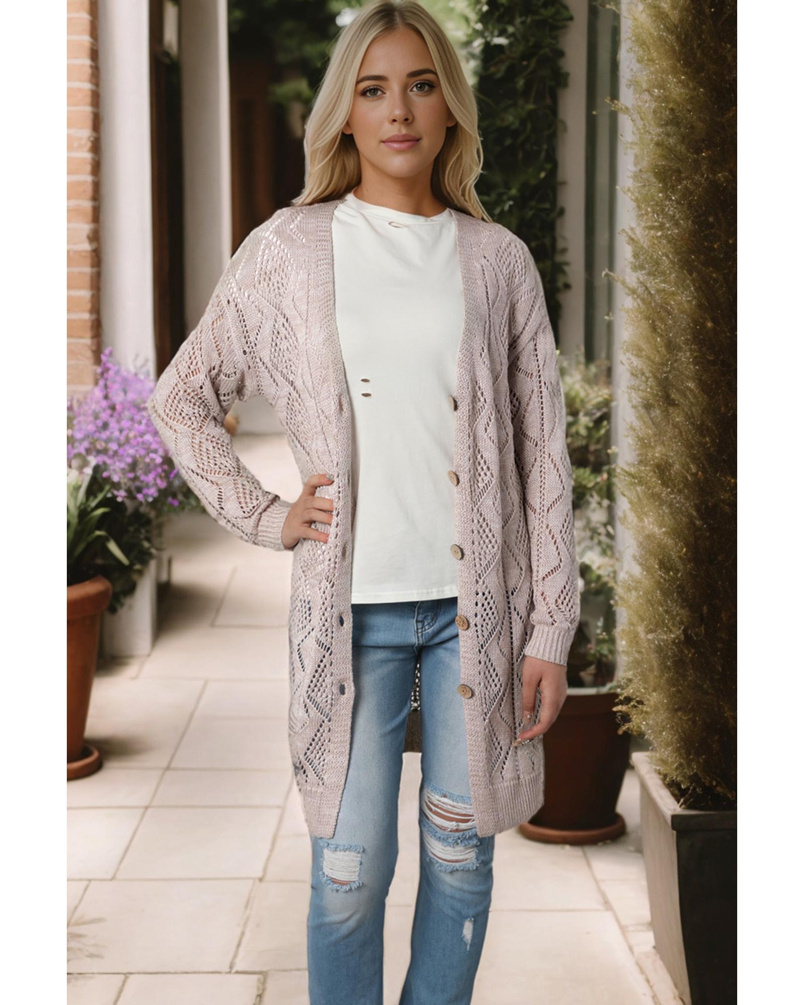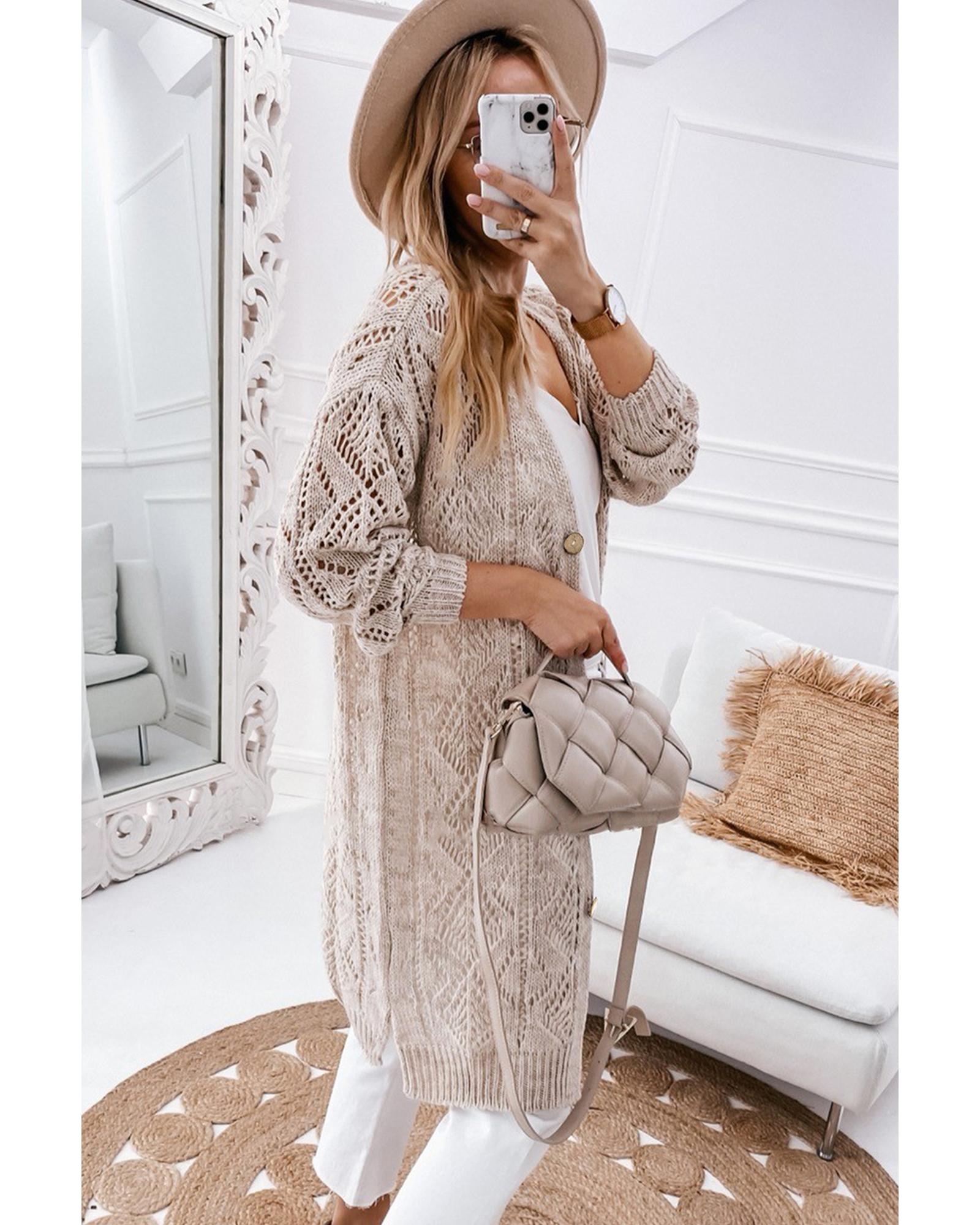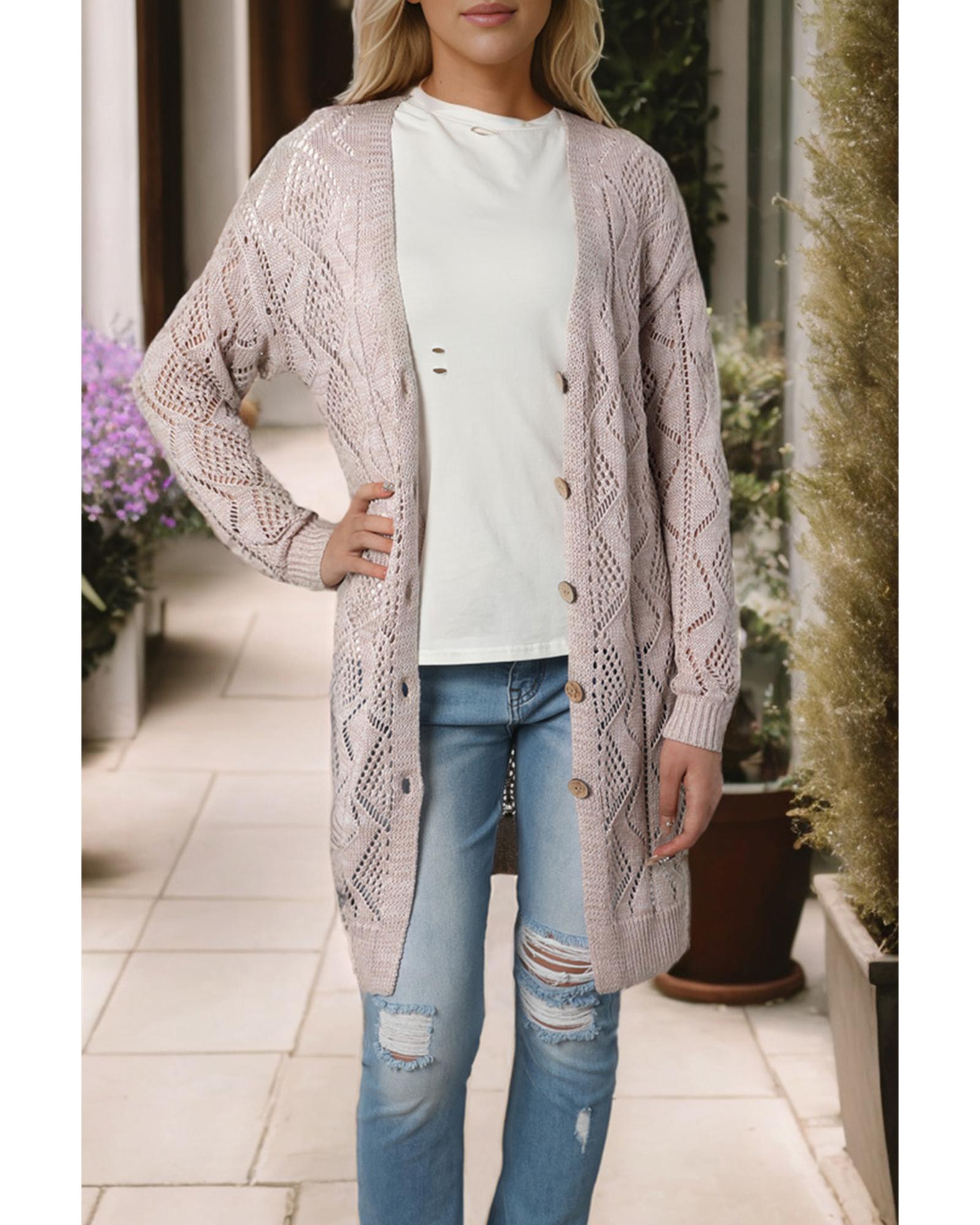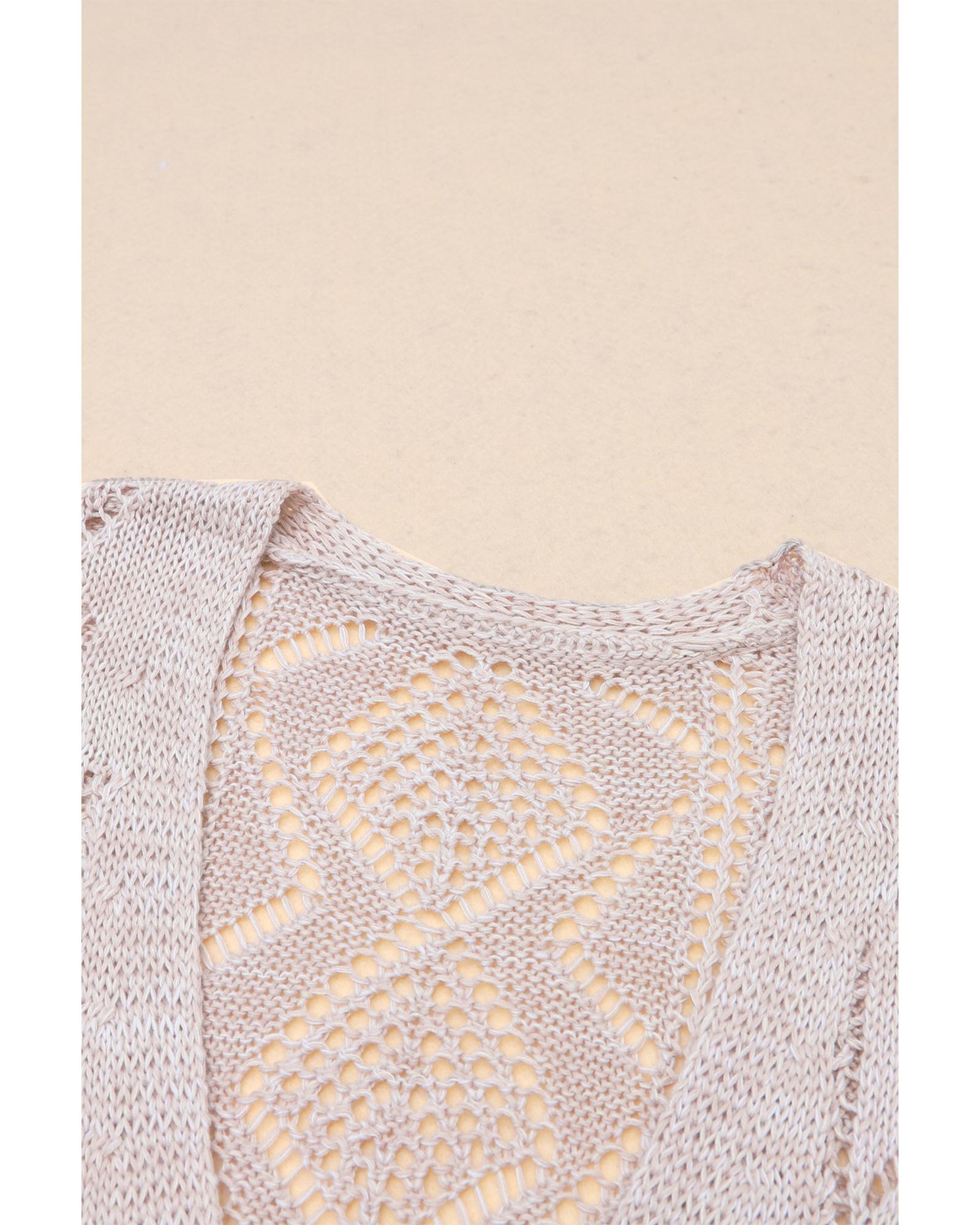 Azura Exchange Khaki Hollow-out Openwork Knit Cardigan – M