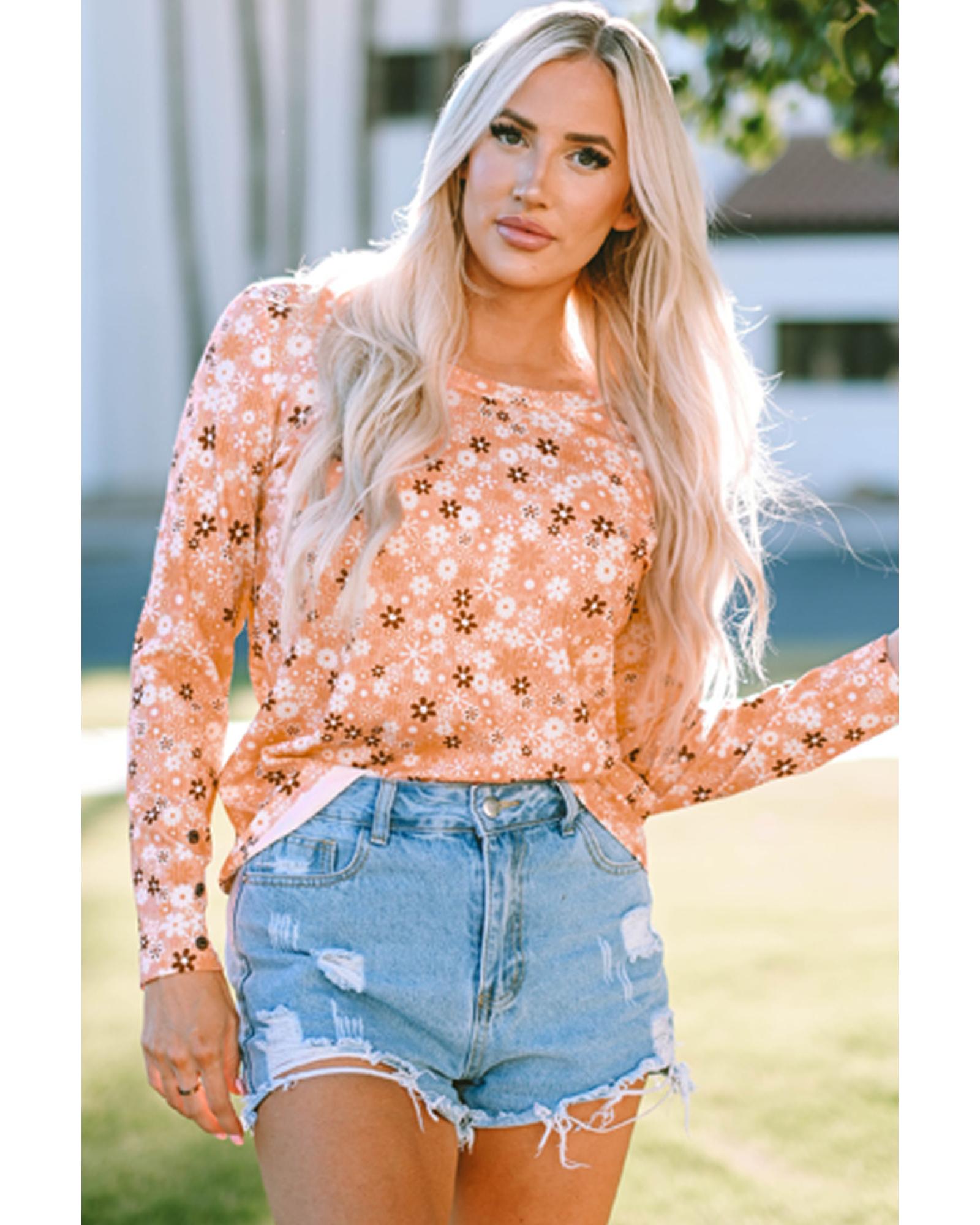 - Stylish and feminine Floral Knit Long Sleeve Top
