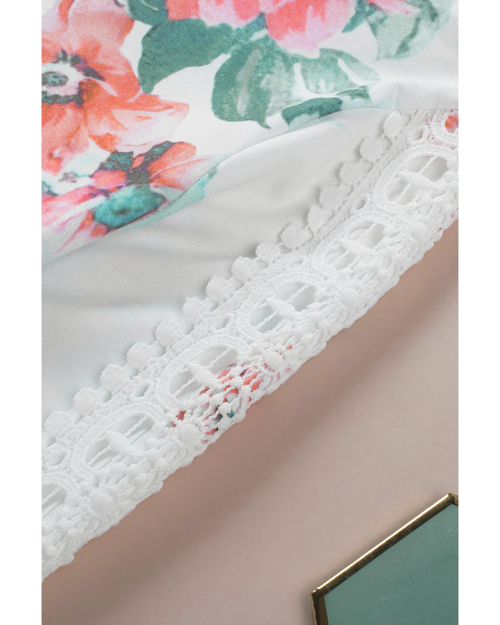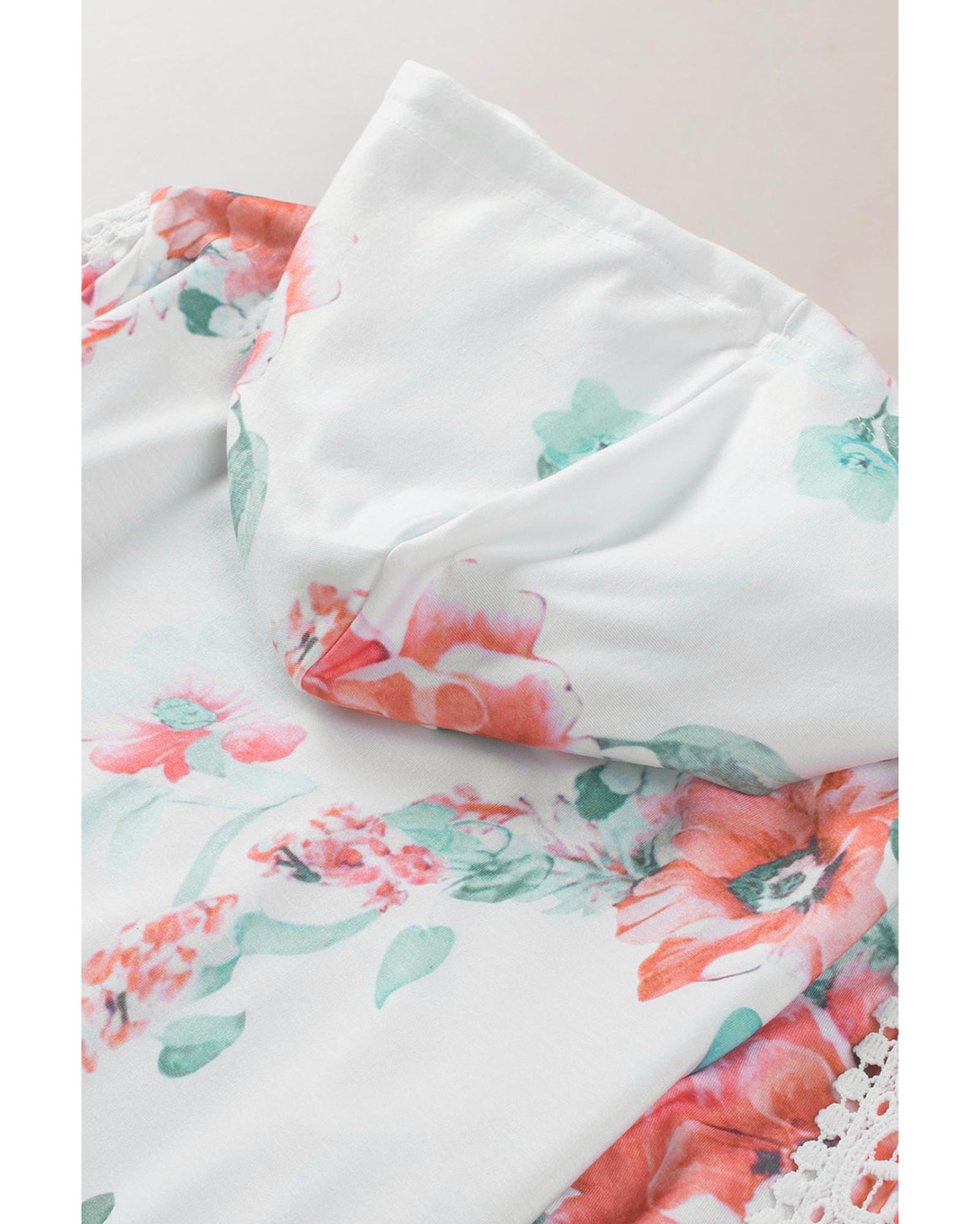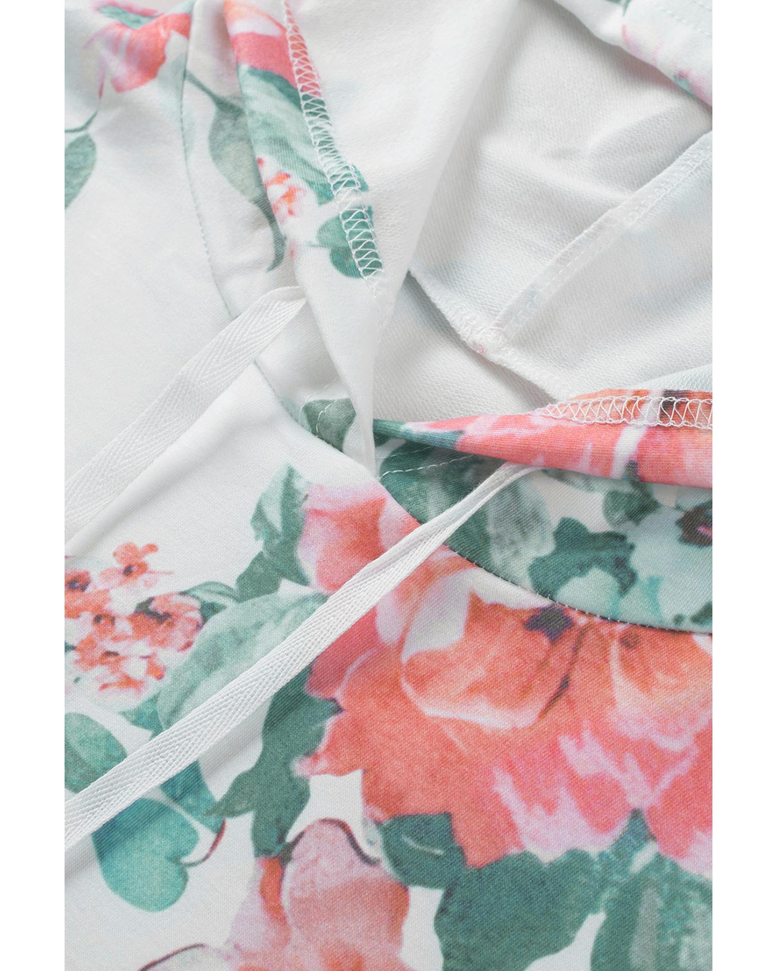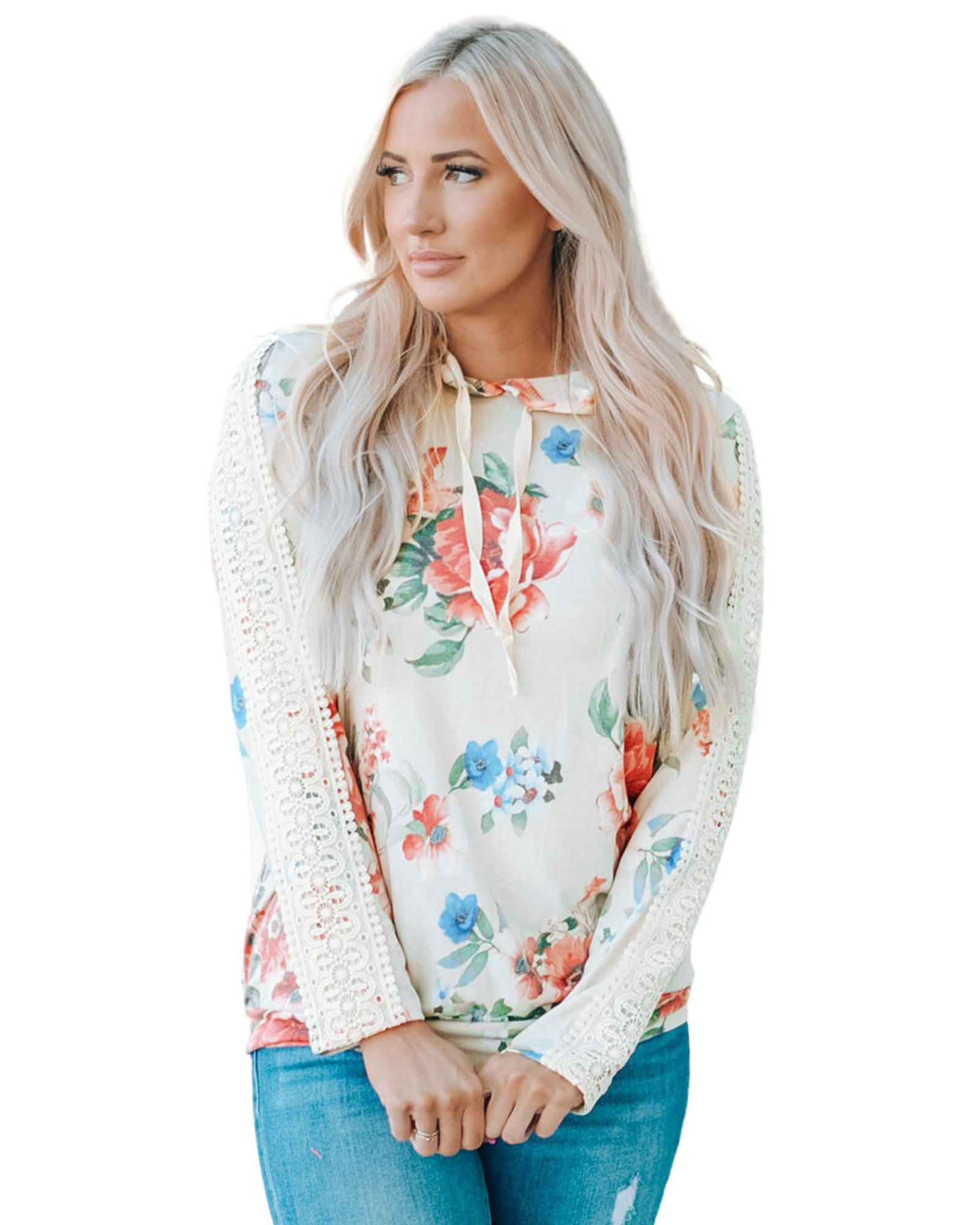 - Stylish and feminine Floral Print Lace Contrast Long Sleeve Hoodie