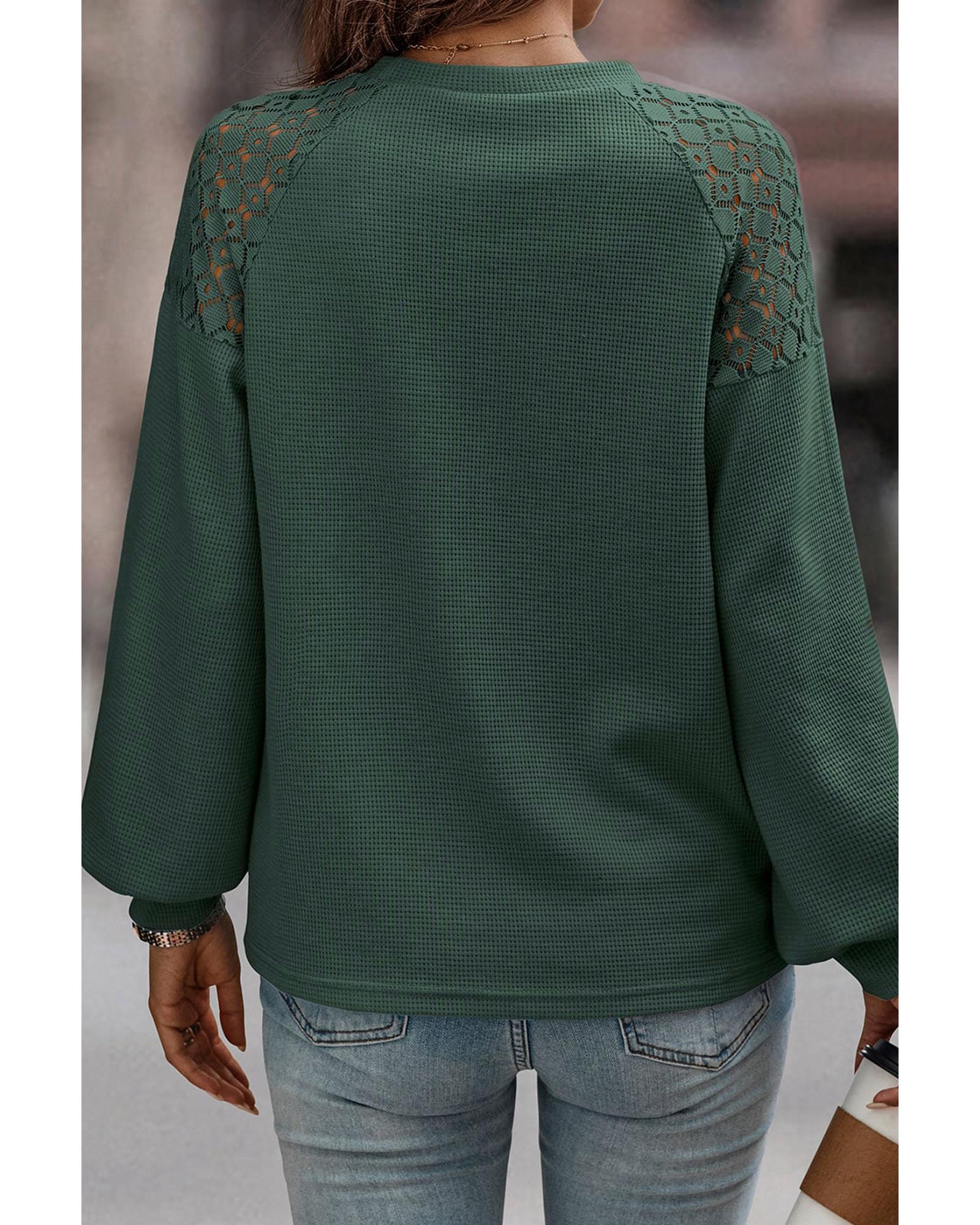 - Feminine waffle-textured top with lace details