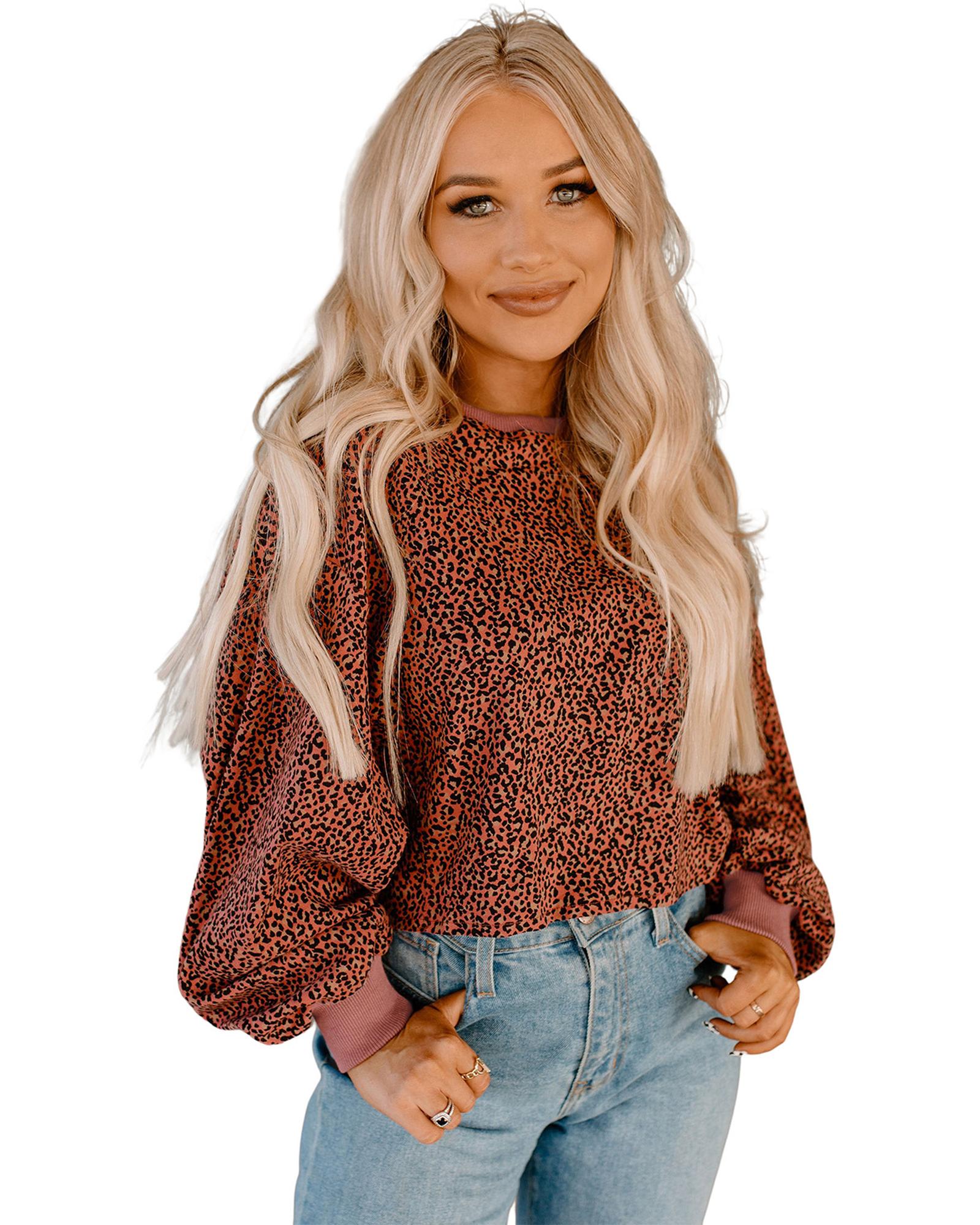 - Stylish and trendy Vintage Leopard Bubble Sleeve Pullover Sweatshirt