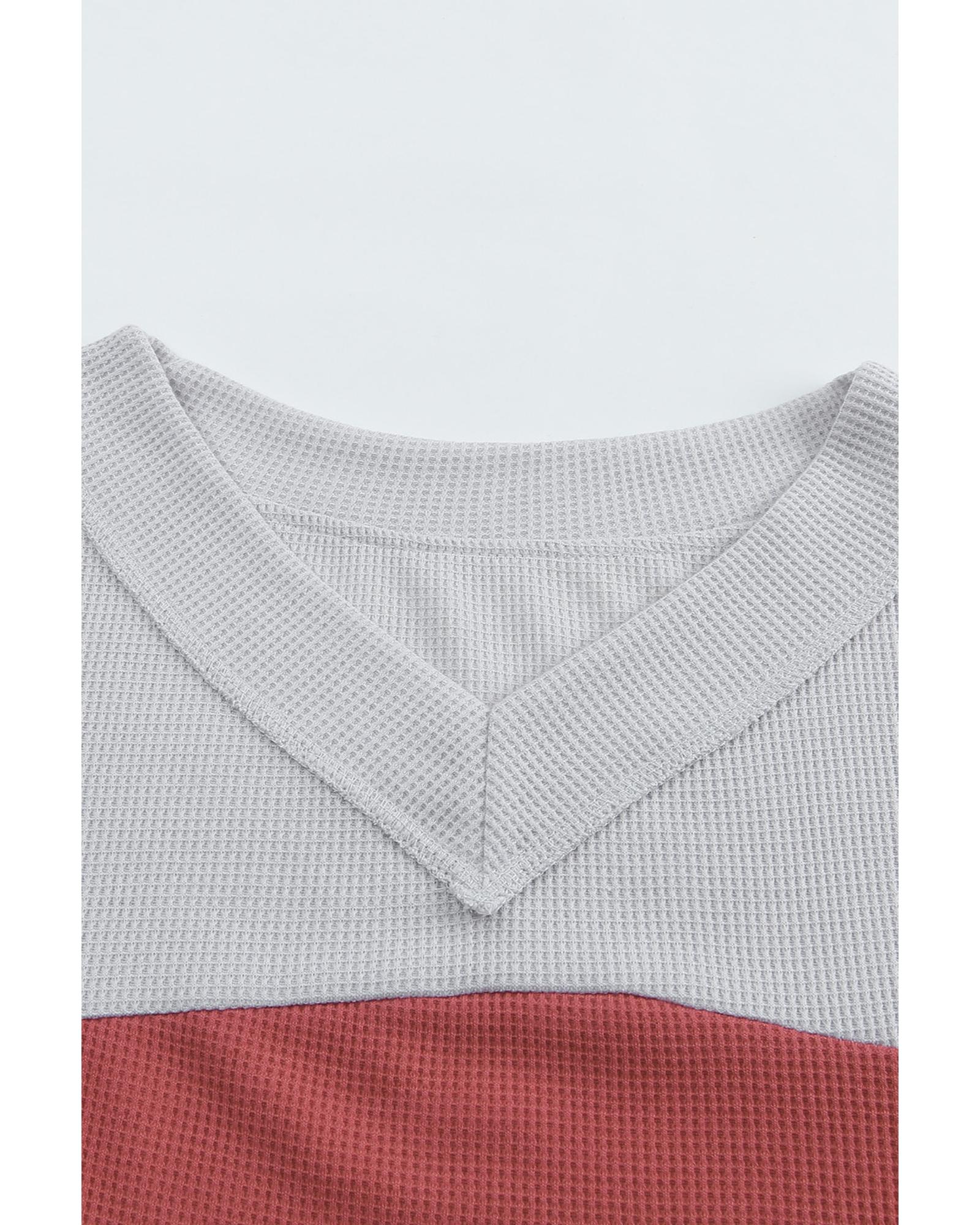 Azura Exchange Leopard Contrast Sleeve Colorblock Waffle Knit Top – M