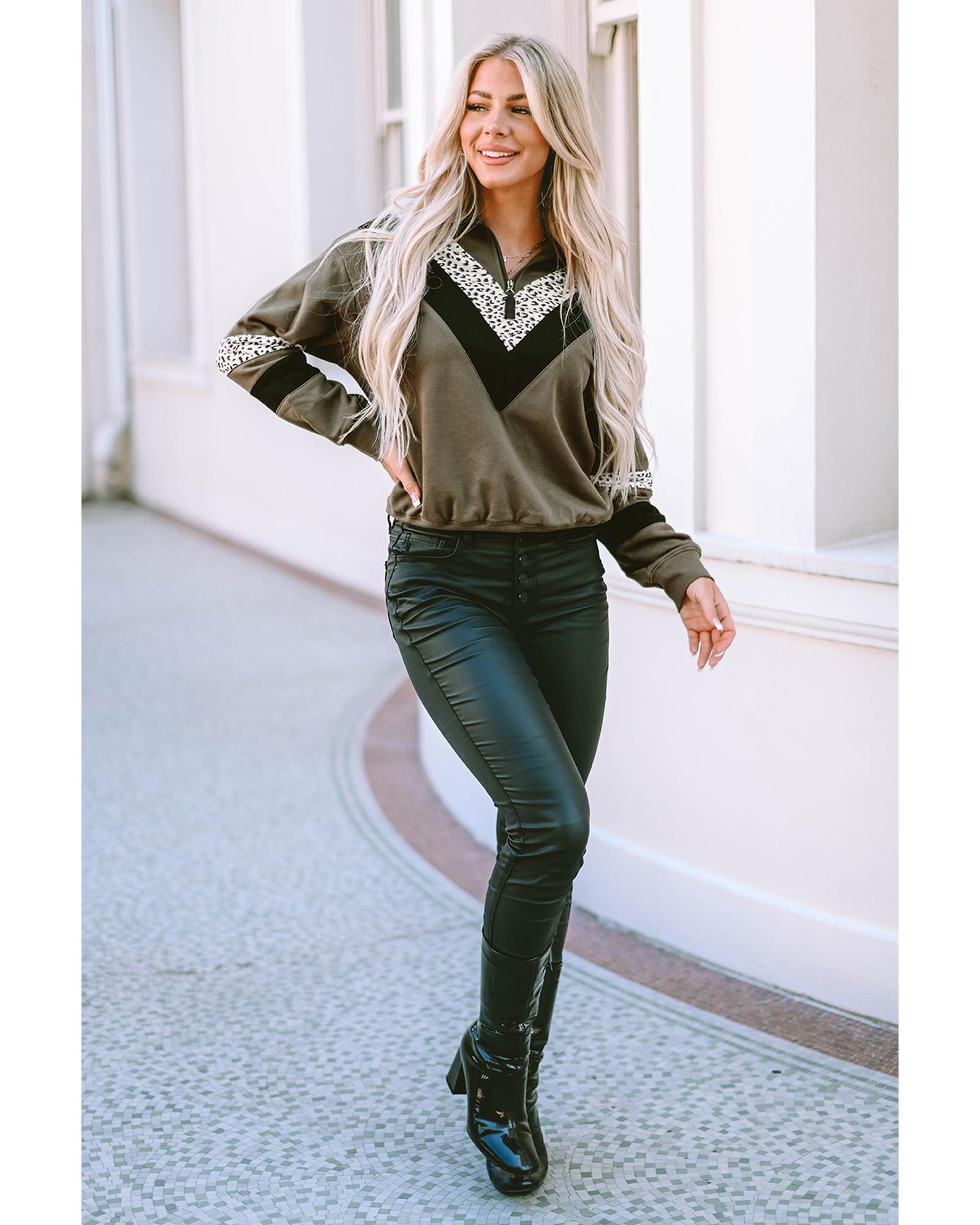 Azura Exchange Leopard Contrast Splicing Quarter Zip Sweatshirt – XL