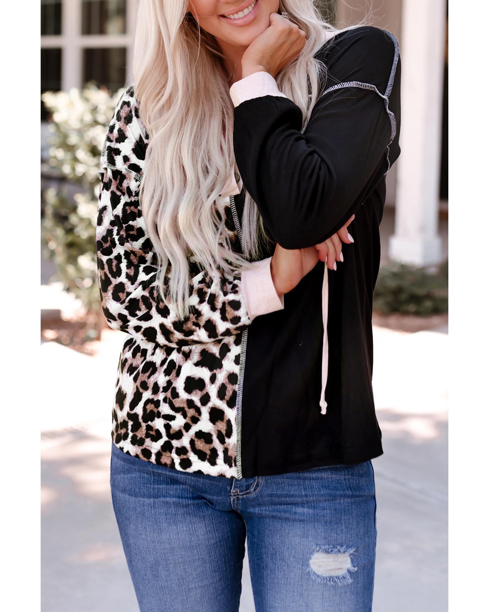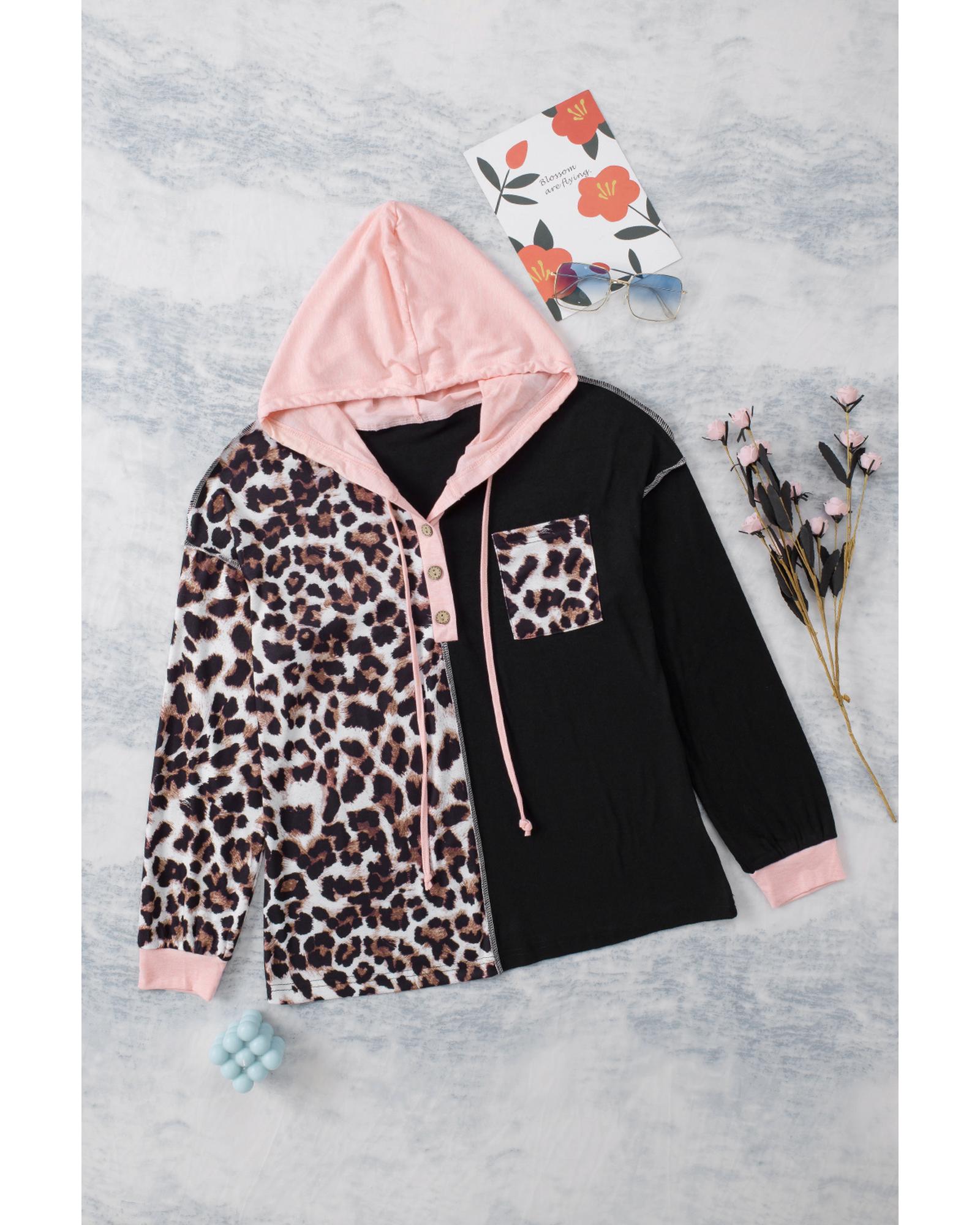 • Stylish and trendy Leopard Patchwork Buttoned Hooded Sweatshirt for women