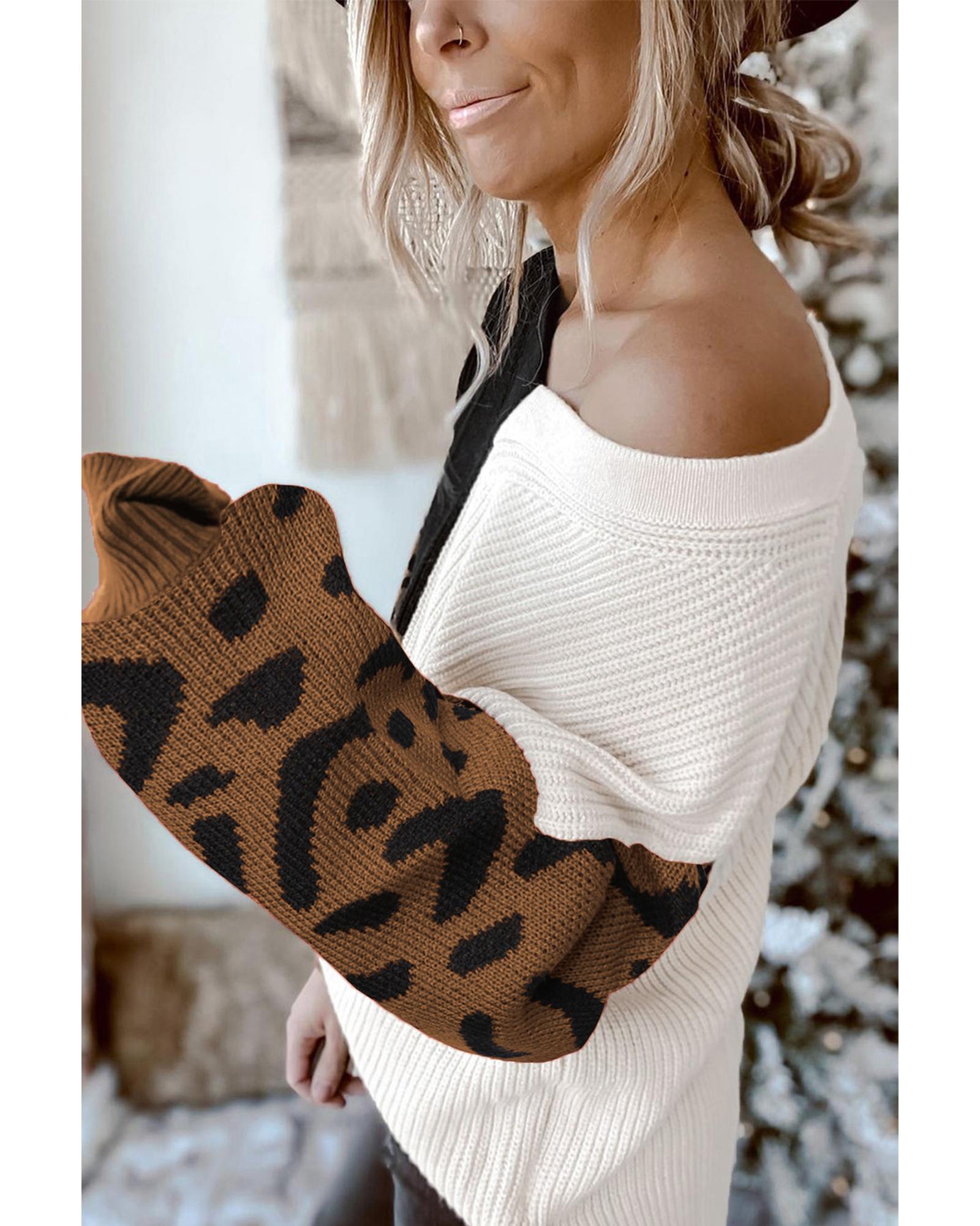 Azura Exchange Leopard Print Contrast Color V Neck Sweater – L