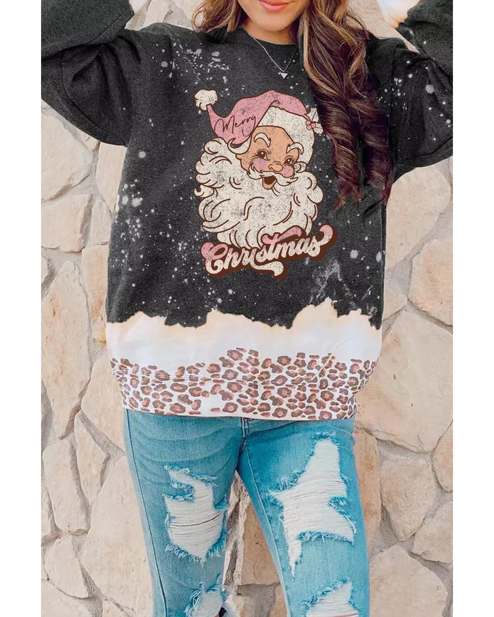 - Stylish Christmas Santa Clause Leopard Print Graphic Sweatshirt