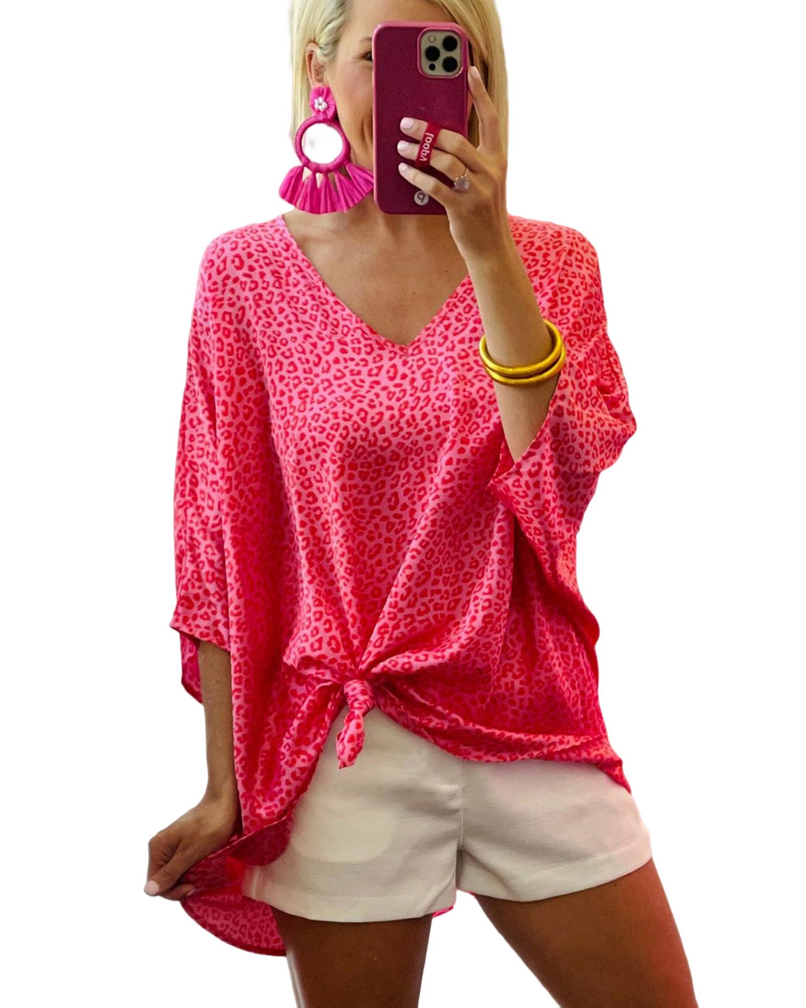 Azura Exchange Leopard Print Oversized V Neck Top – S
