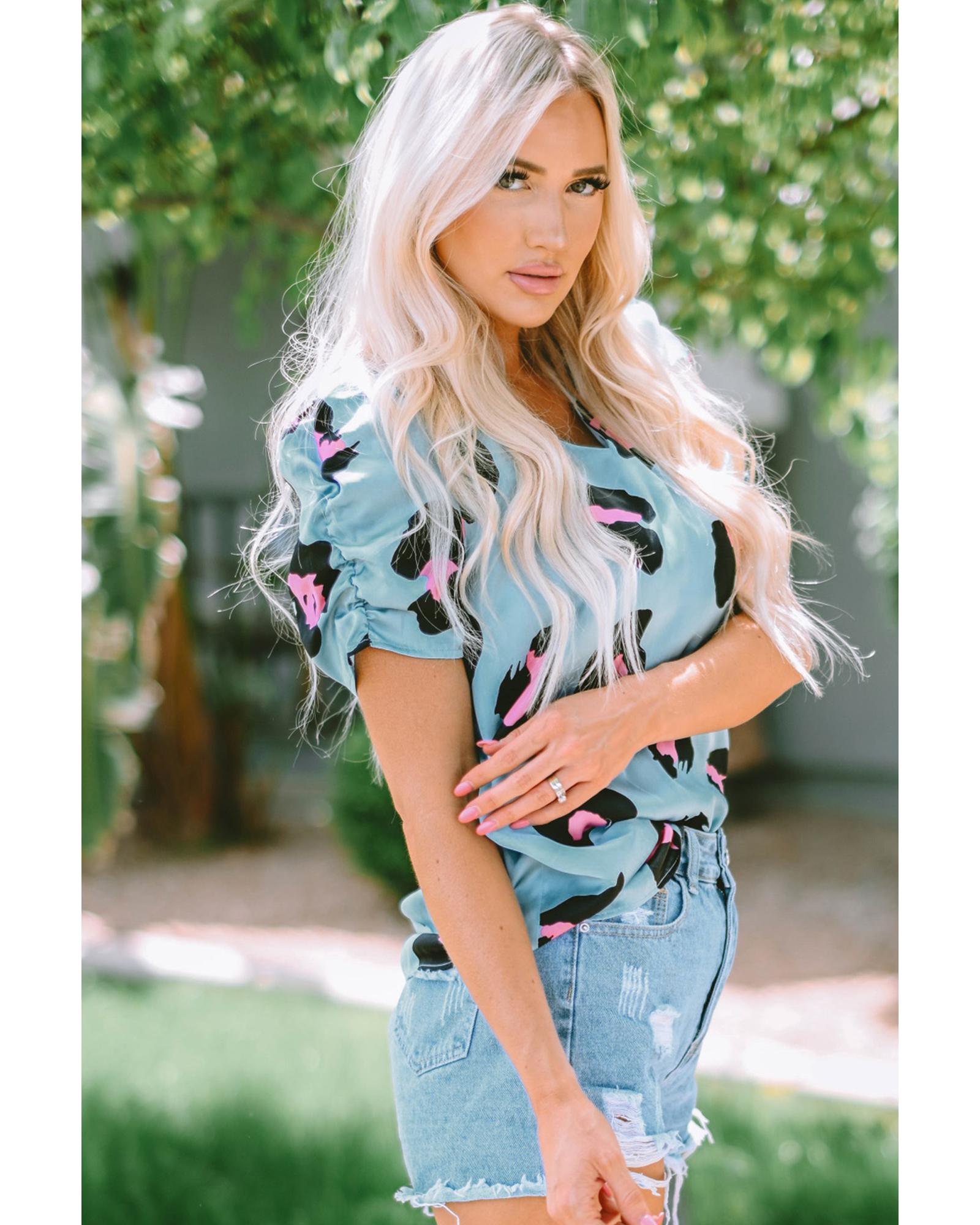 Azura Exchange Leopard Print Ruched Short Sleeve Blouse – S