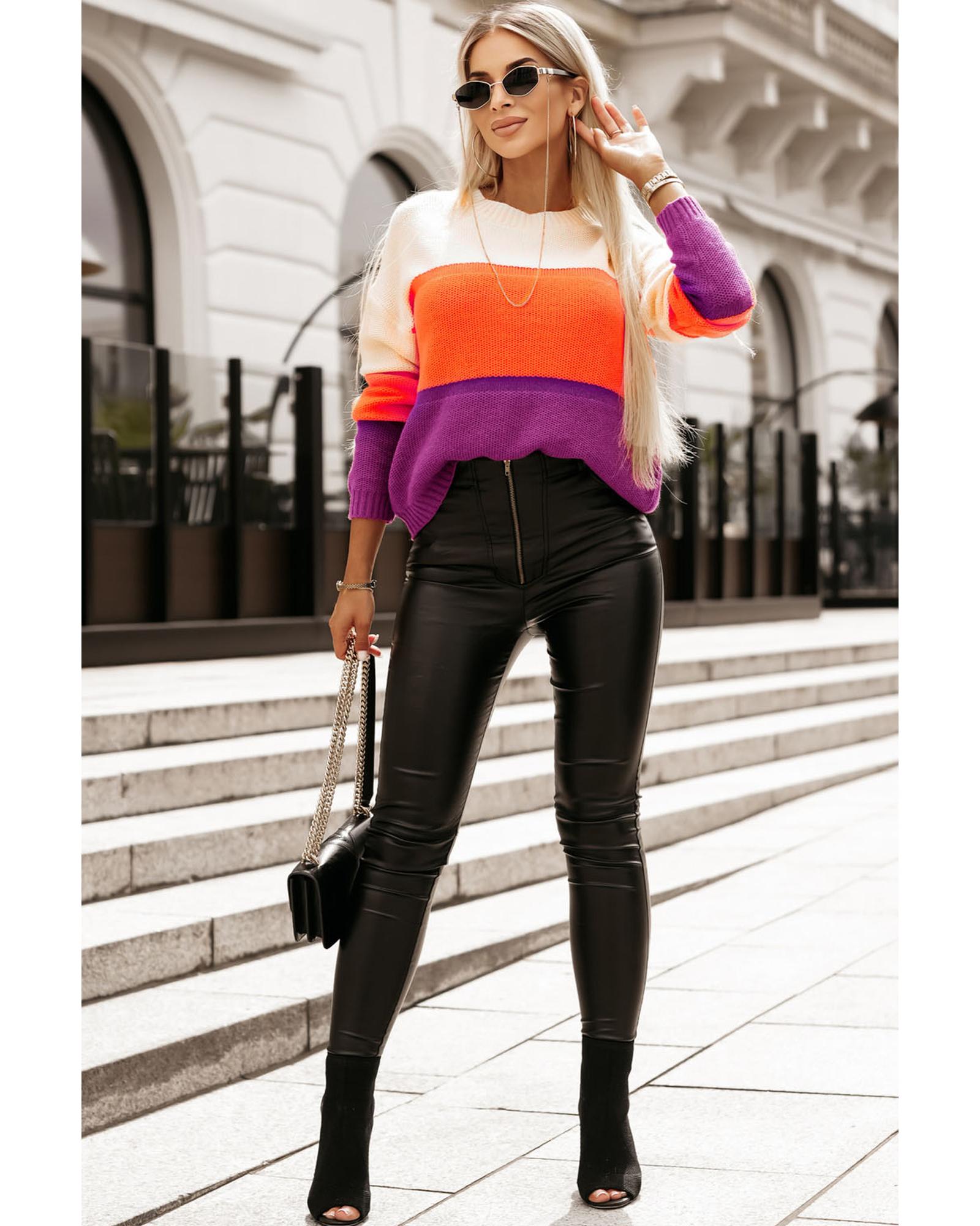 Azura Exchange Multicolor Color Block Drop Shoulder Round Neck Knit Sweater – L