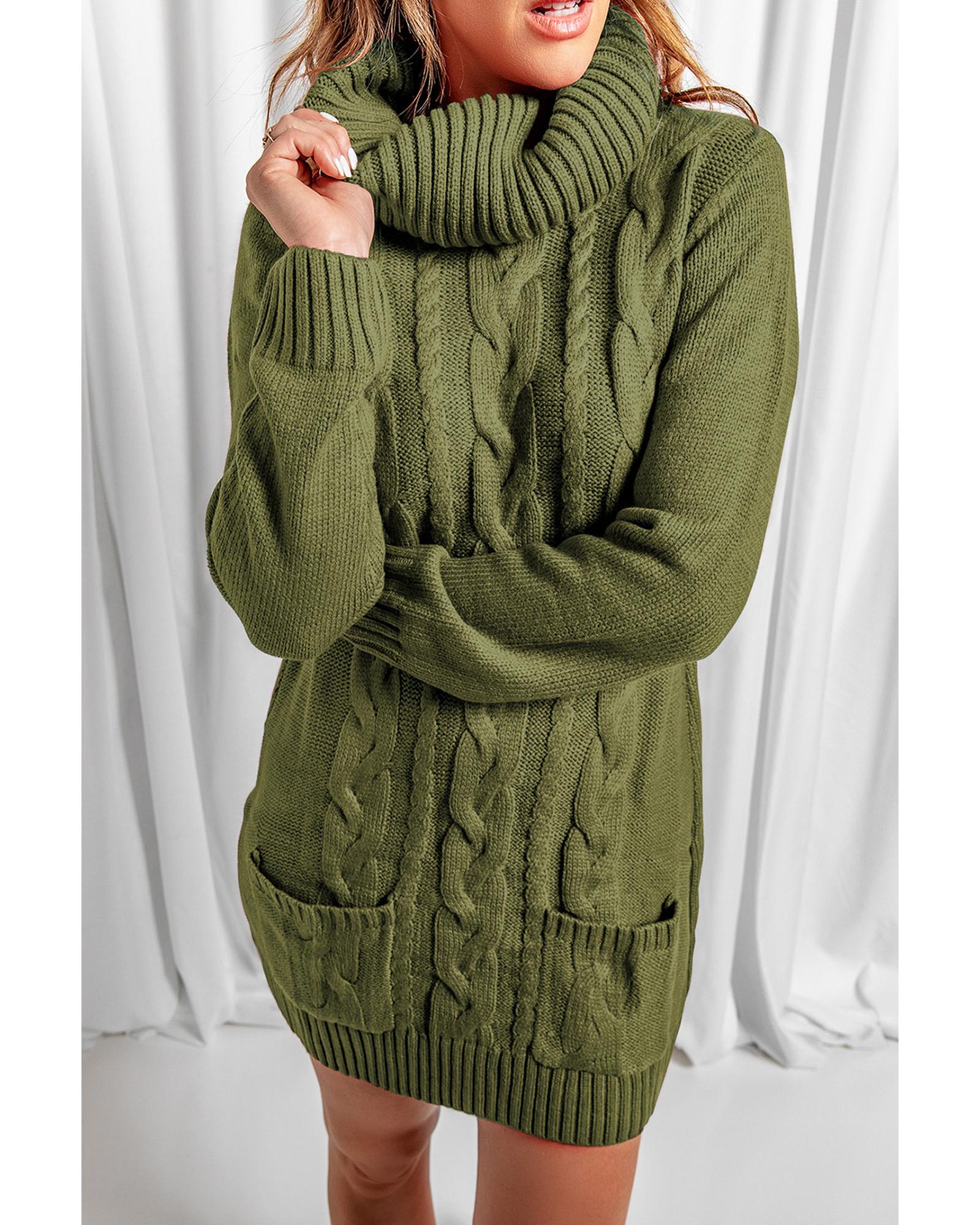 Azura Exchange Olive Cowl Neck Cable Knit Sweater Dress – M