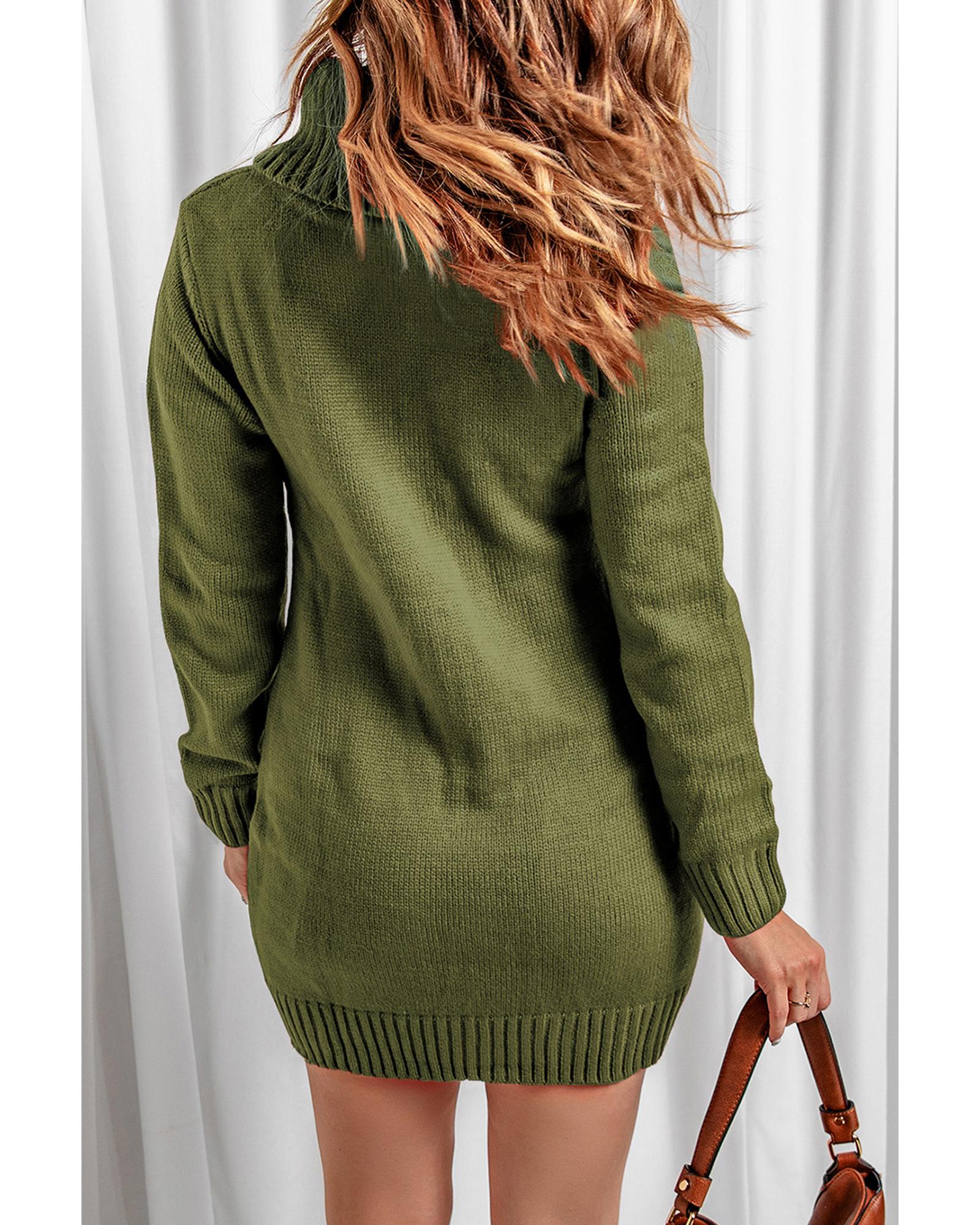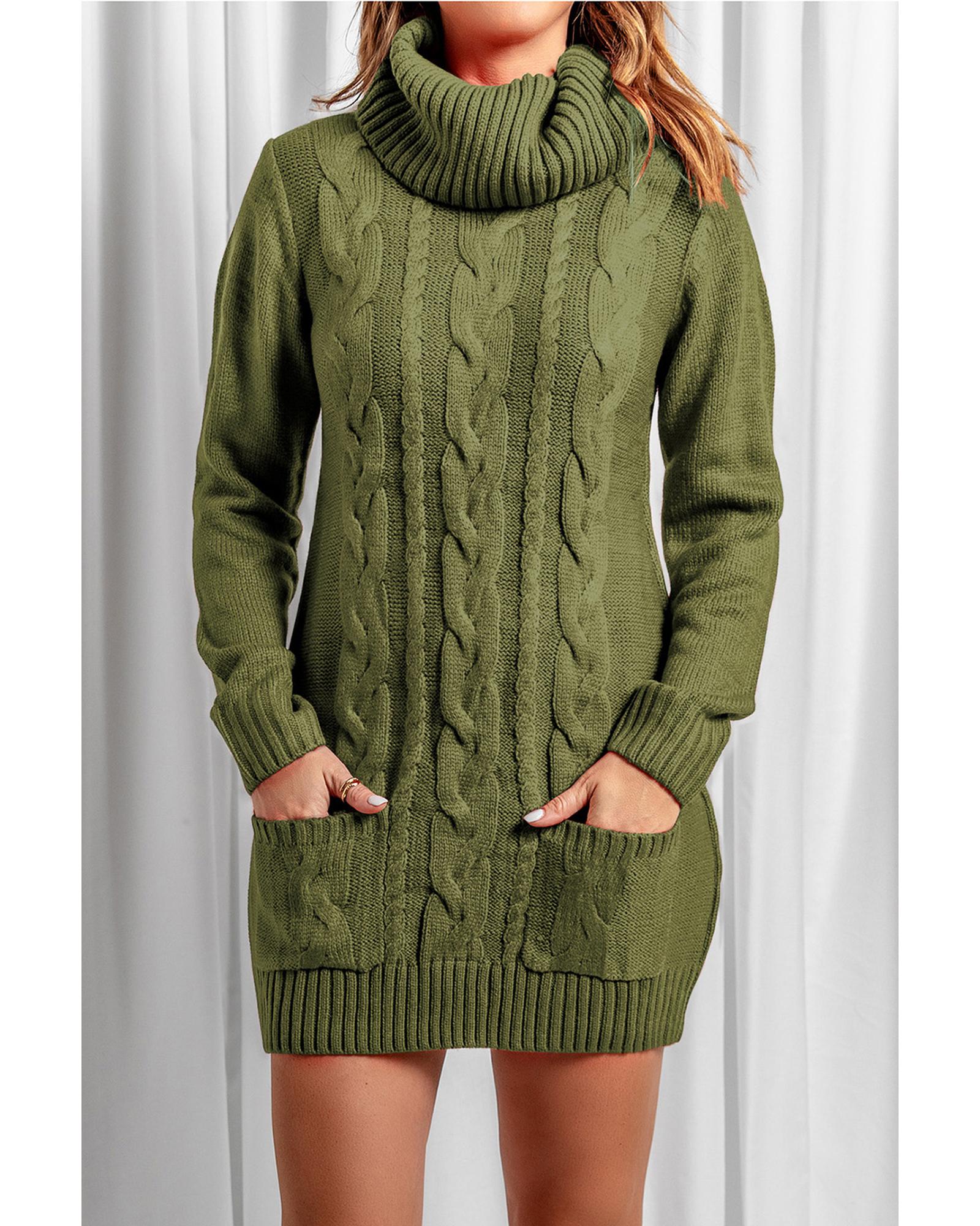 Azura Exchange Olive Cowl Neck Cable Knit Sweater Dress – S