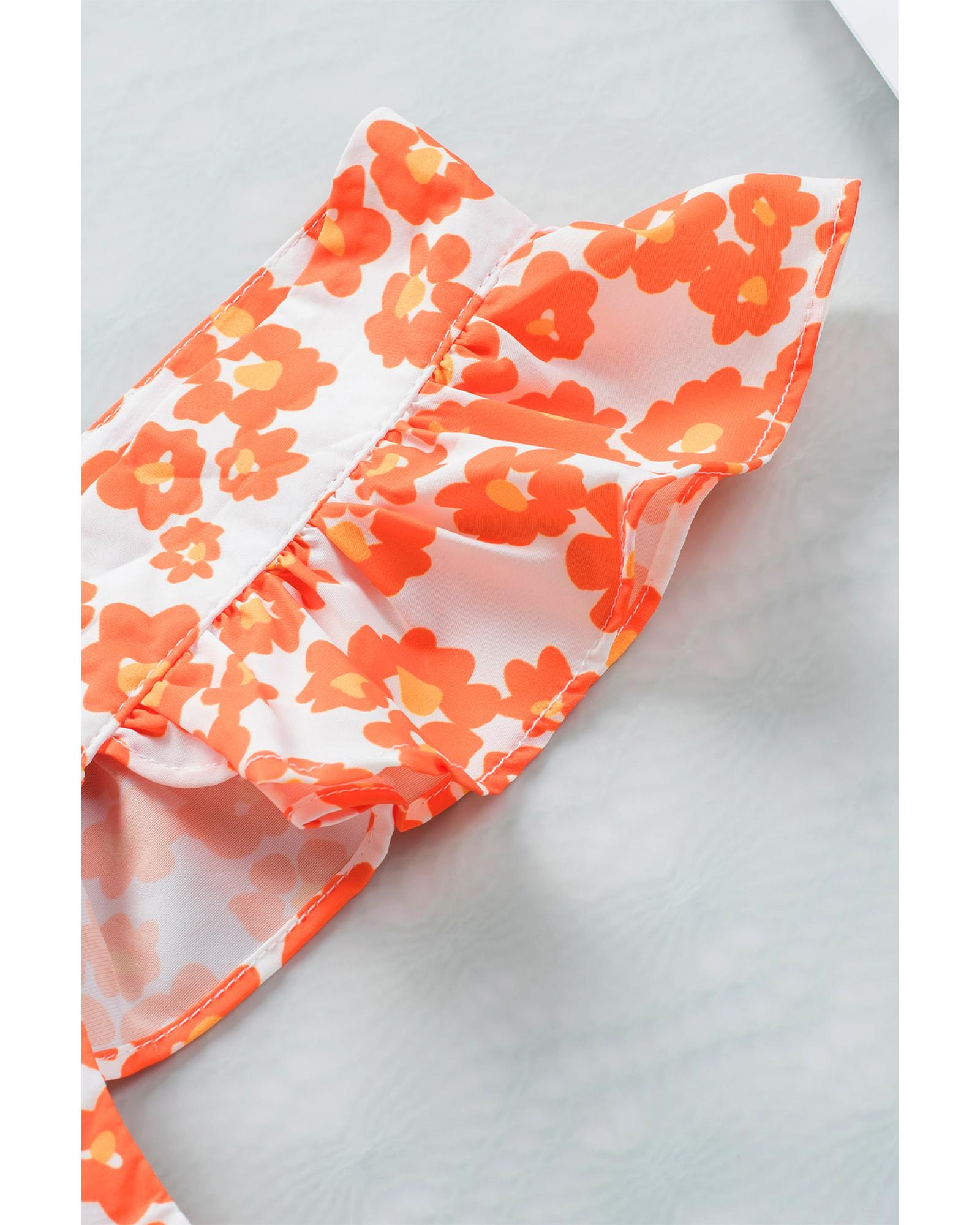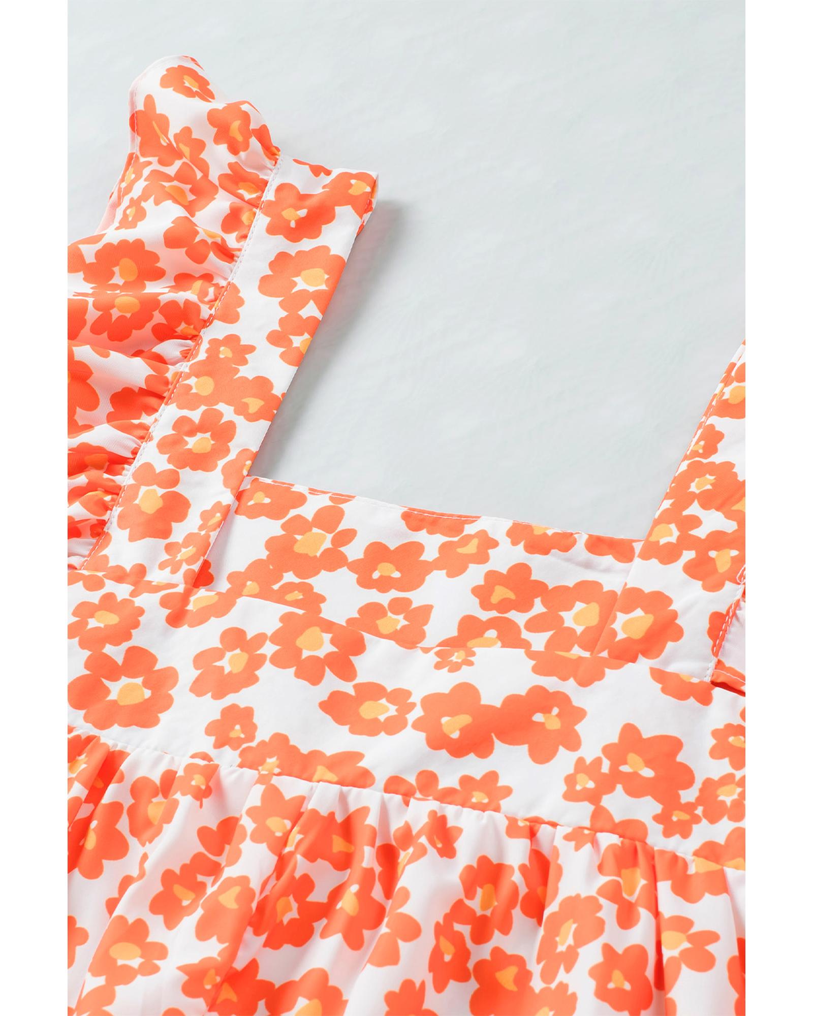Azura Exchange Orange Floral Print Square Neck Ruffle Tank Top – L