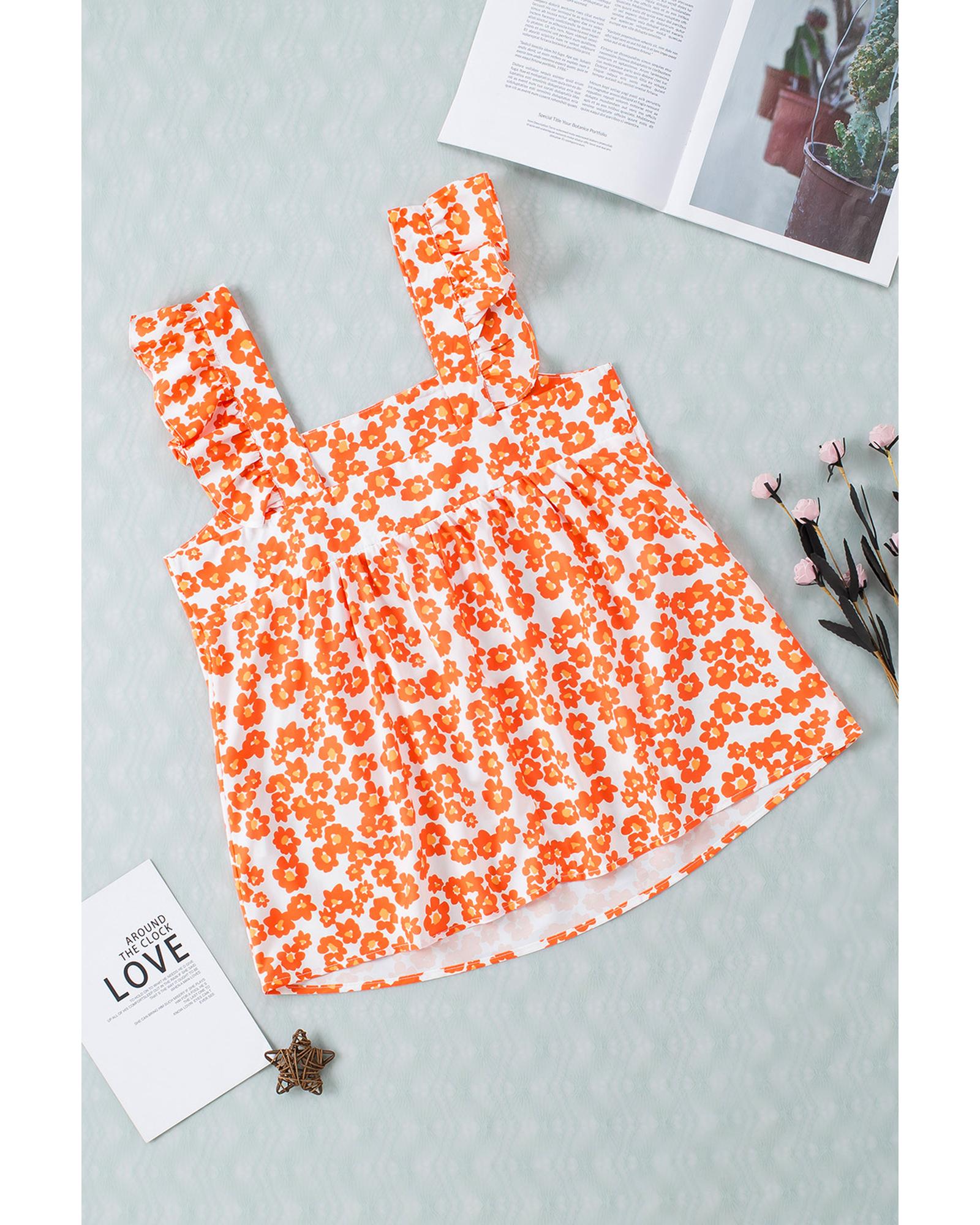 Azura Exchange Orange Floral Print Square Neck Ruffle Tank Top – S