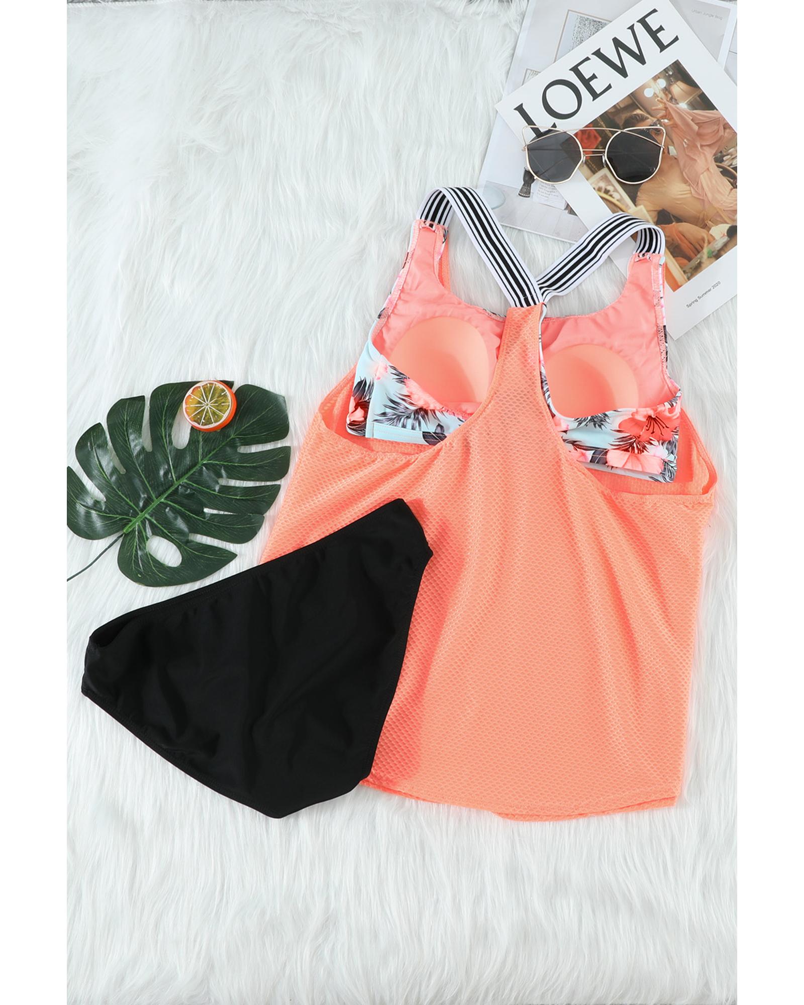 Azura Exchange Orange Printed Splicing Racerback Tankini – S