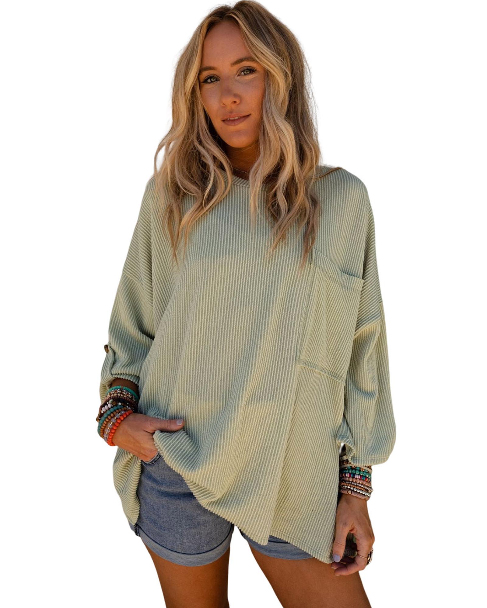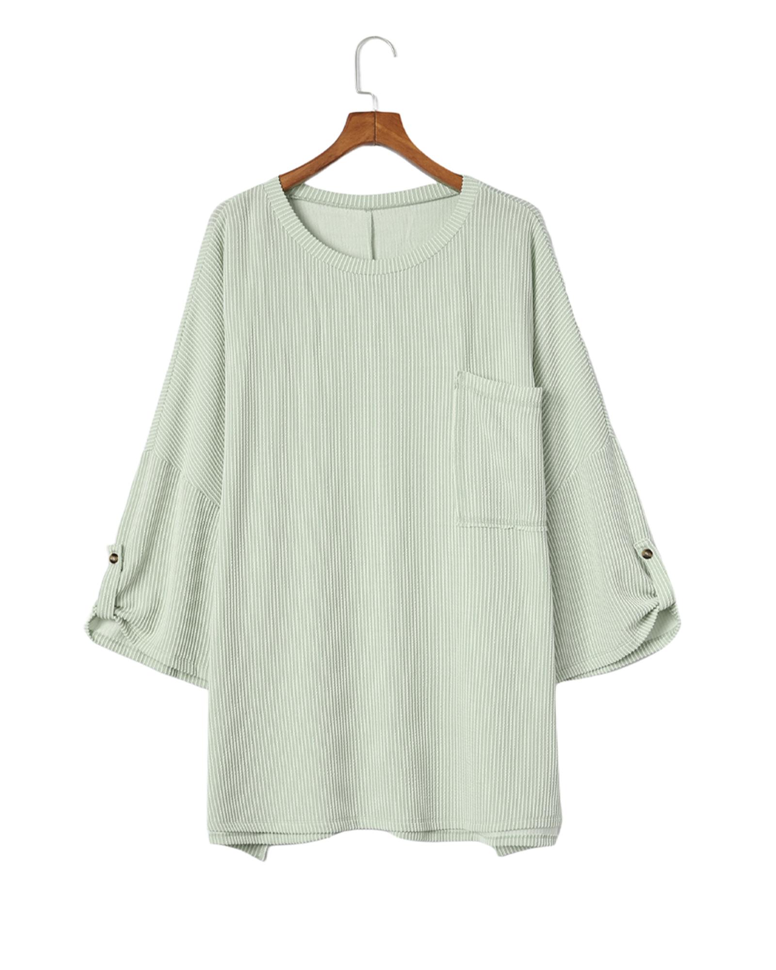 Azura Exchange Oversize Ribbed Roll-tab Sleeve Top – L