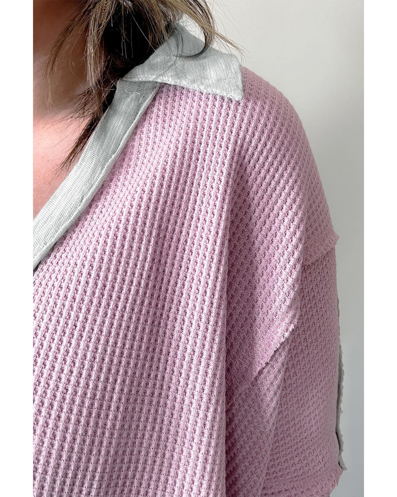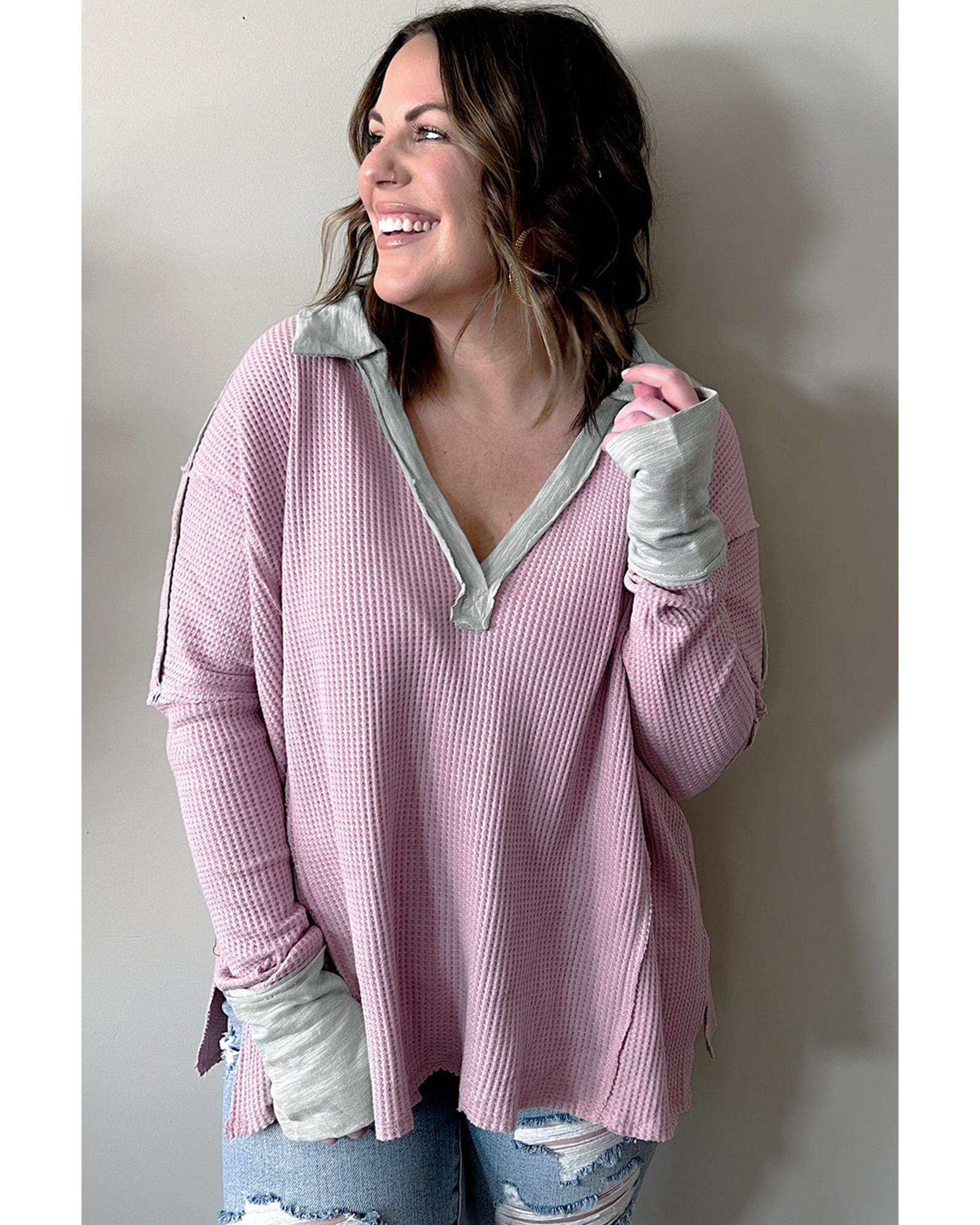 - Pink Plus Size Exposed Seam Waffle Knit Top