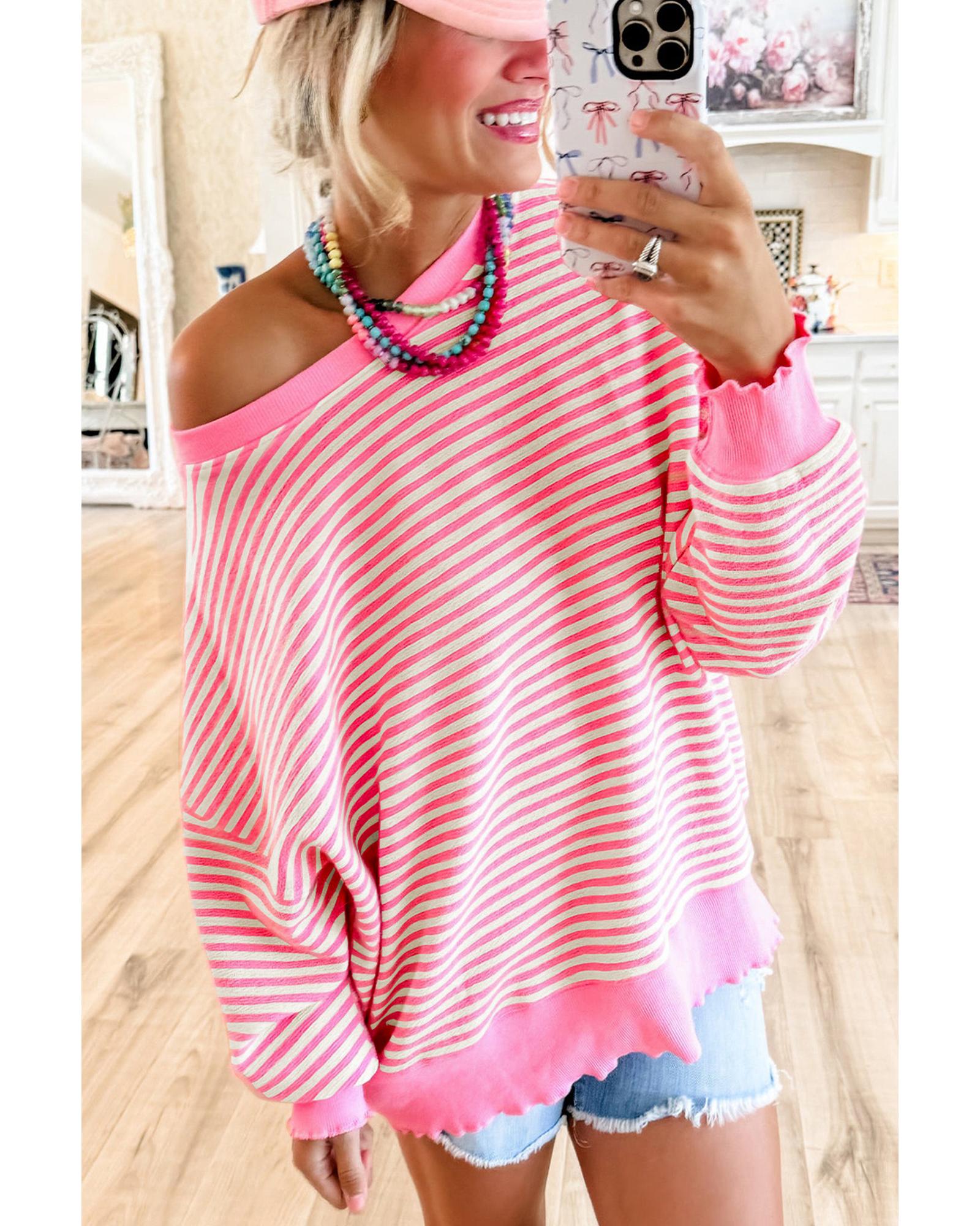 Azura Exchange Pink Stripe Loose Drop Shoulder Long Sleeve Top – L