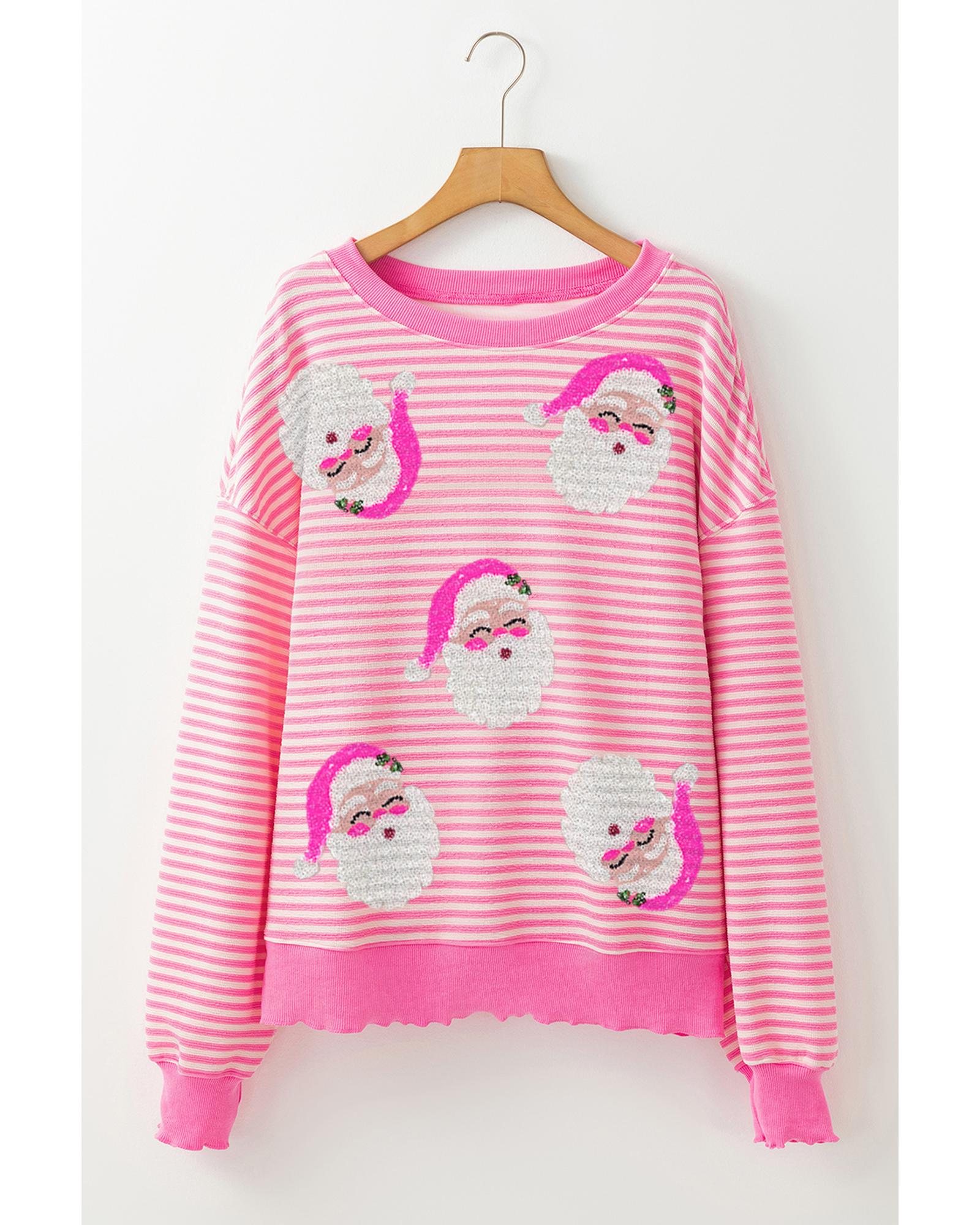 Azura Exchange Pink Stripe Santa Clause Print Drop Shoulder Long Sleeve Loose Top – M