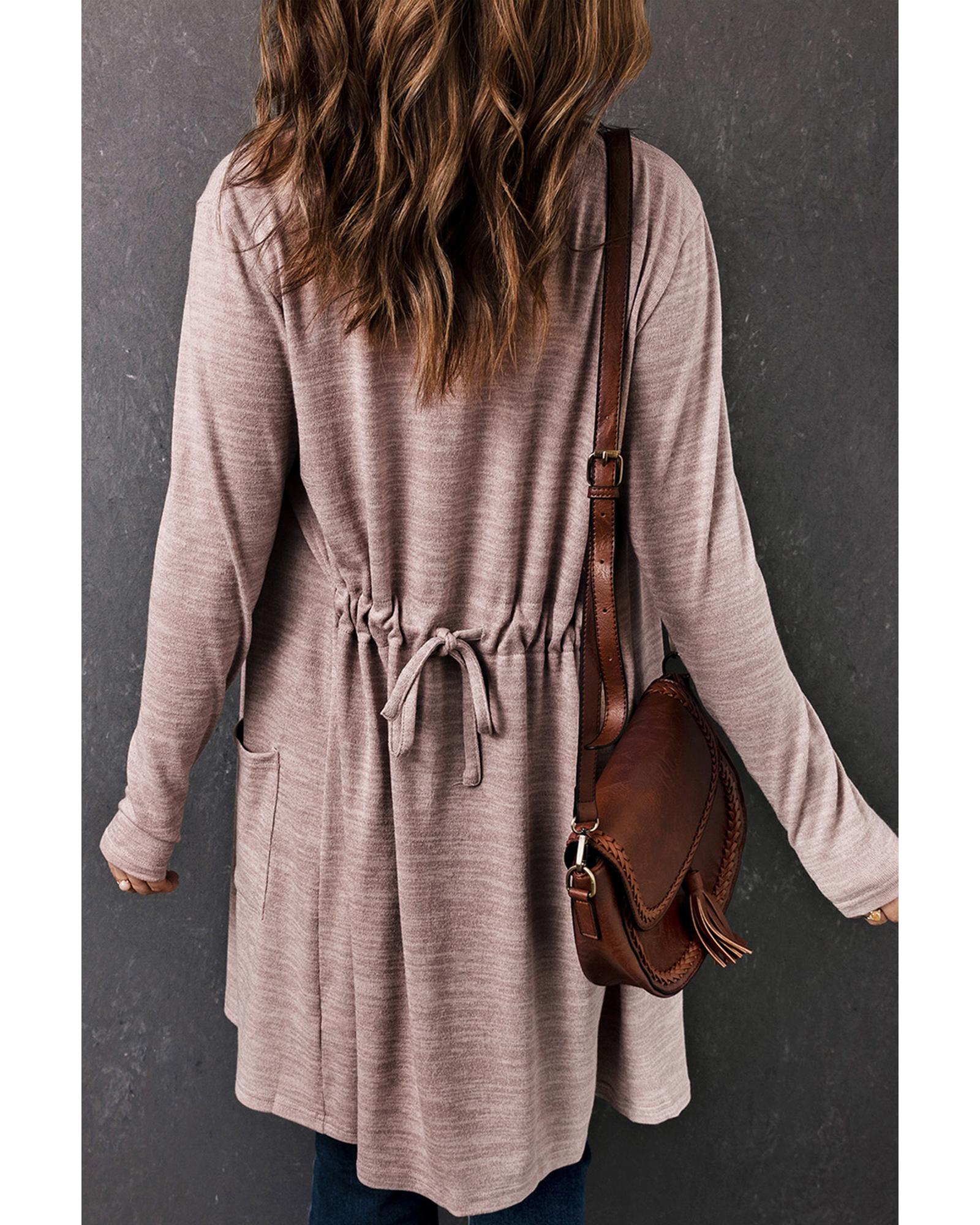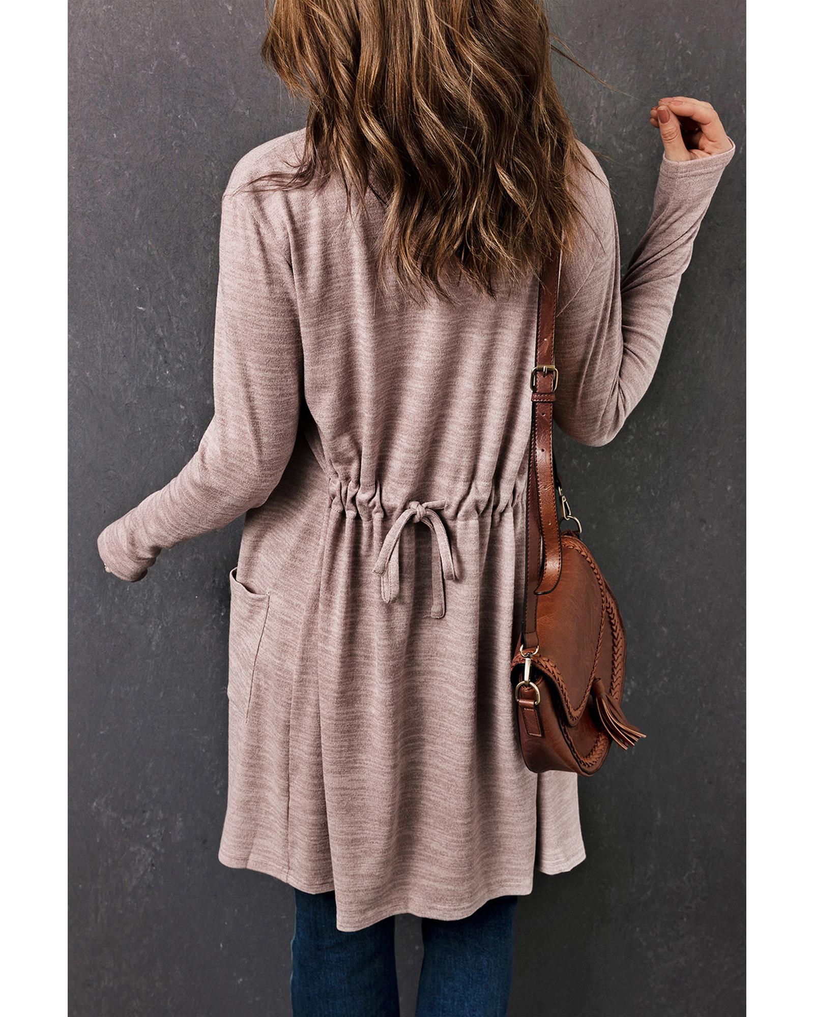 - Pink Tunic Back Open Front Cardigan with Pockets