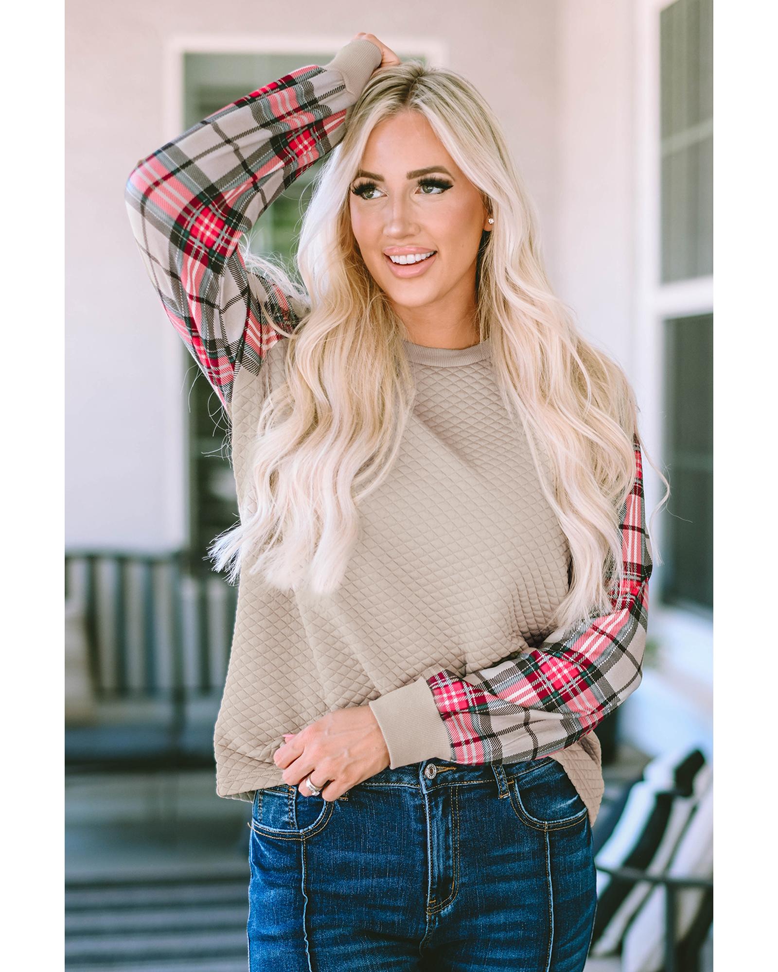 Azura Exchange Plaid Raglan Sleeve Sweatshirt – S