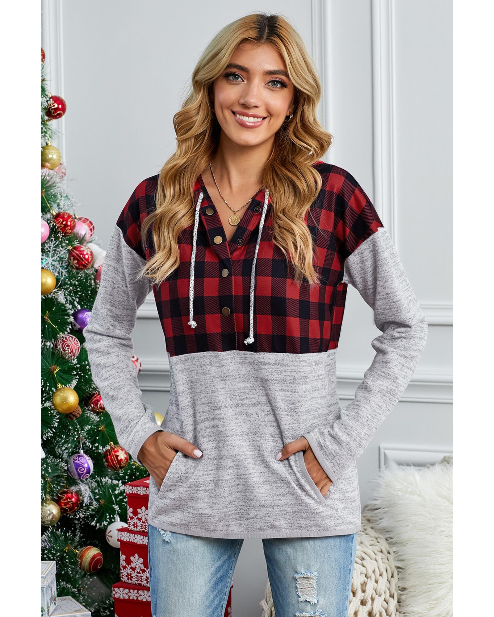 Azura Exchange Plaid Splicing Pocketed Hoodie – S