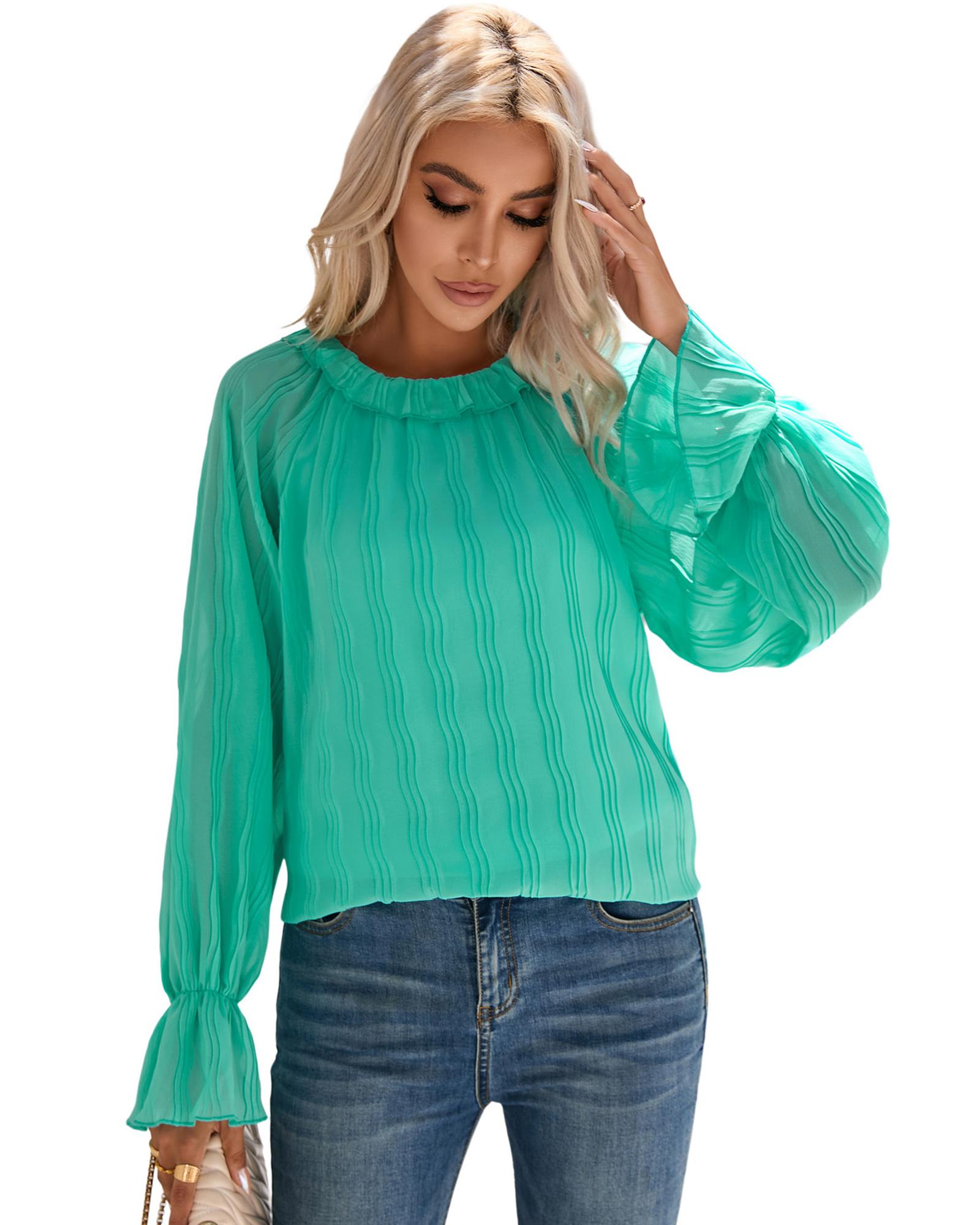 - Luxurious Striking Pleated Flared Cuff Long Sleeve Blouse