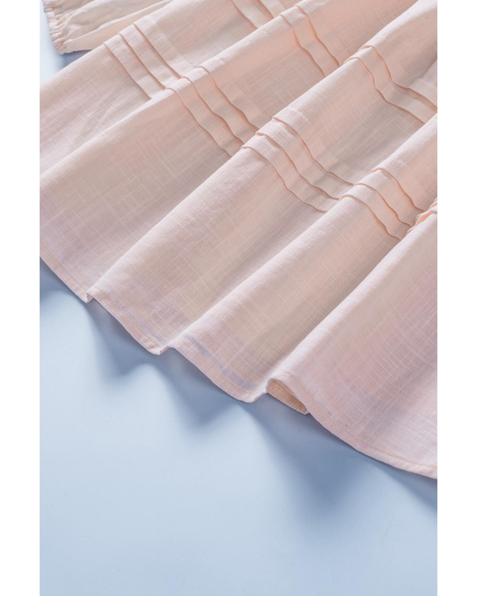 - Elegant Beige Puff Sleeve Eyelet Babydoll Blouse