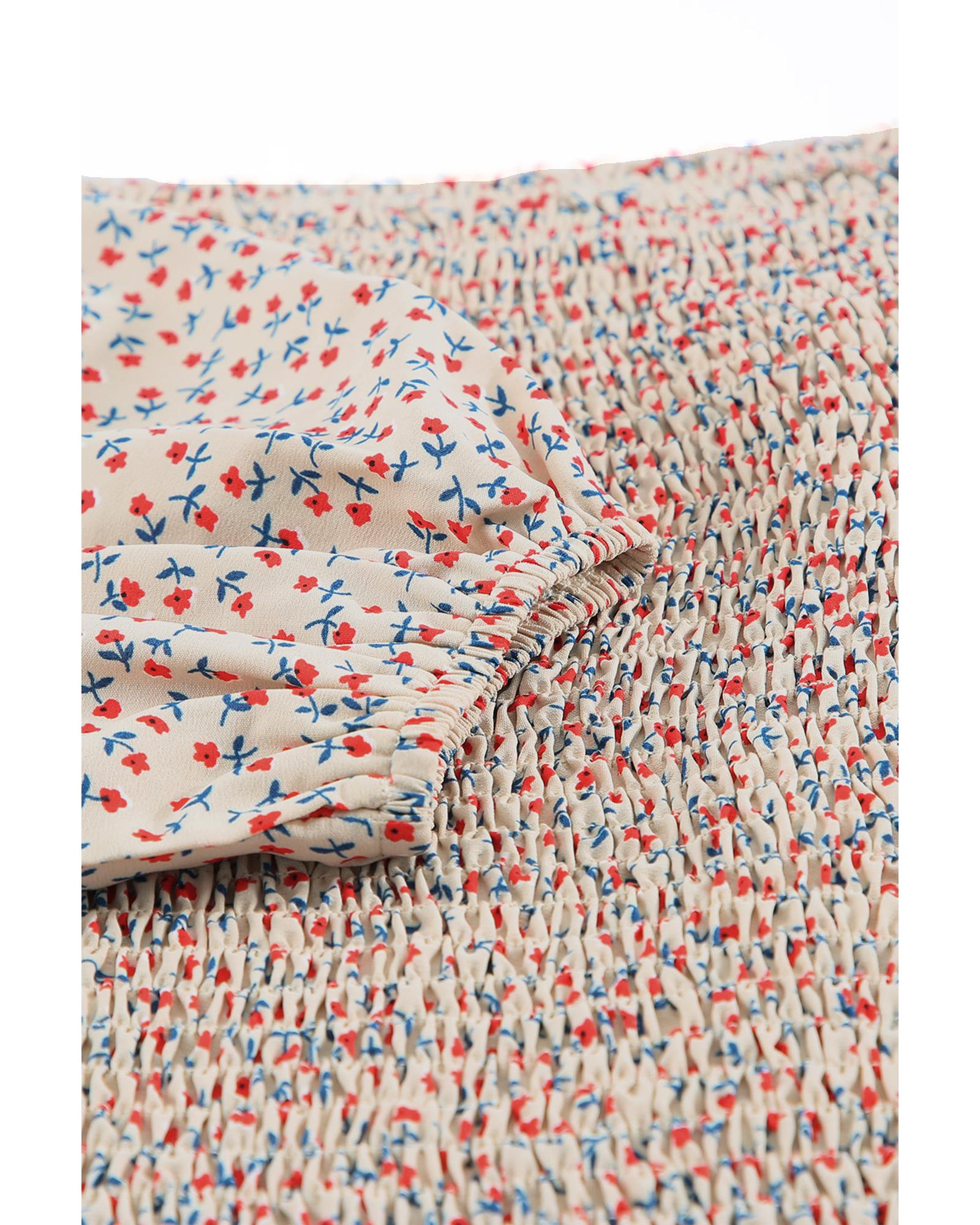 Azura Exchange Puff Sleeve Floral Smocked Top - L