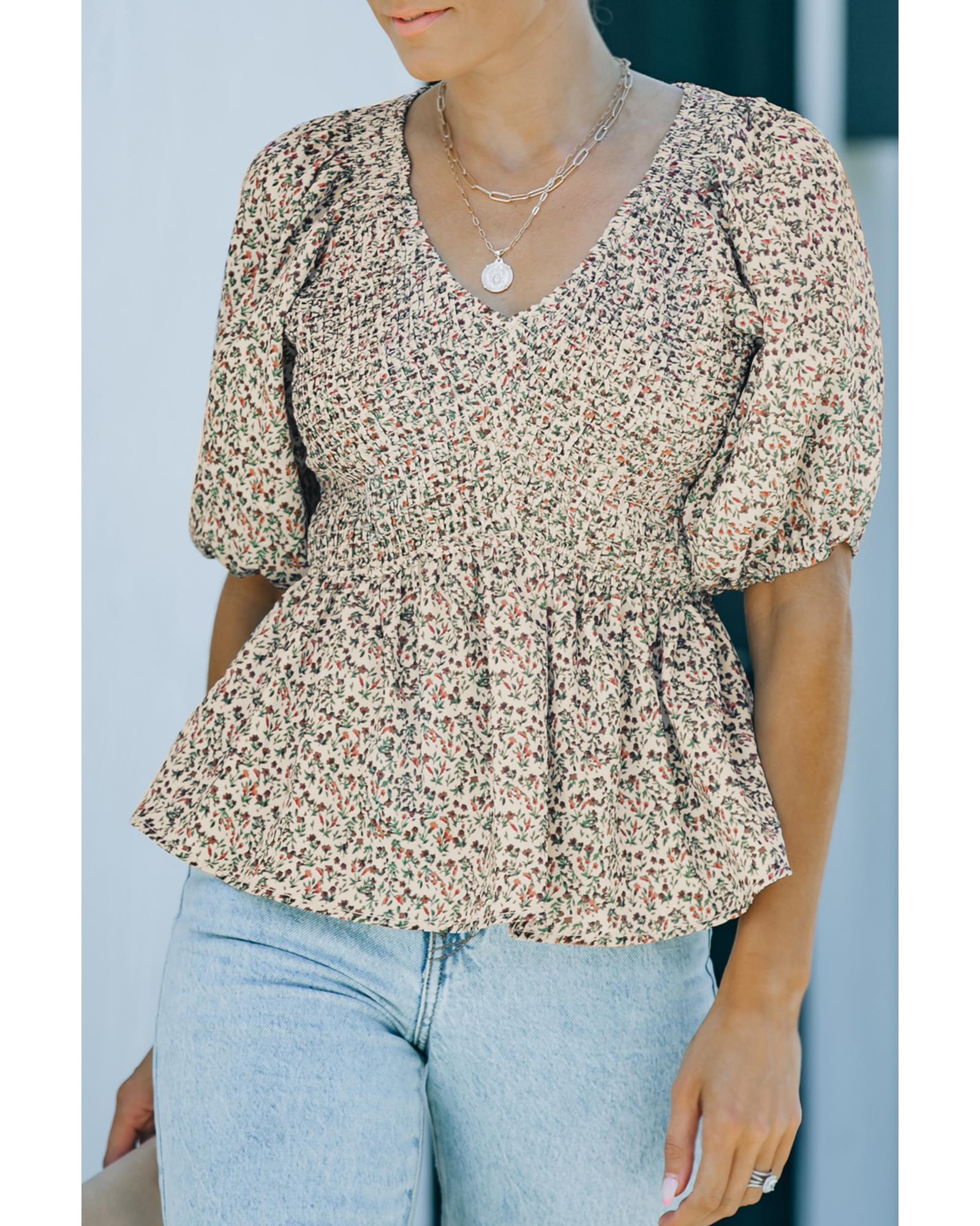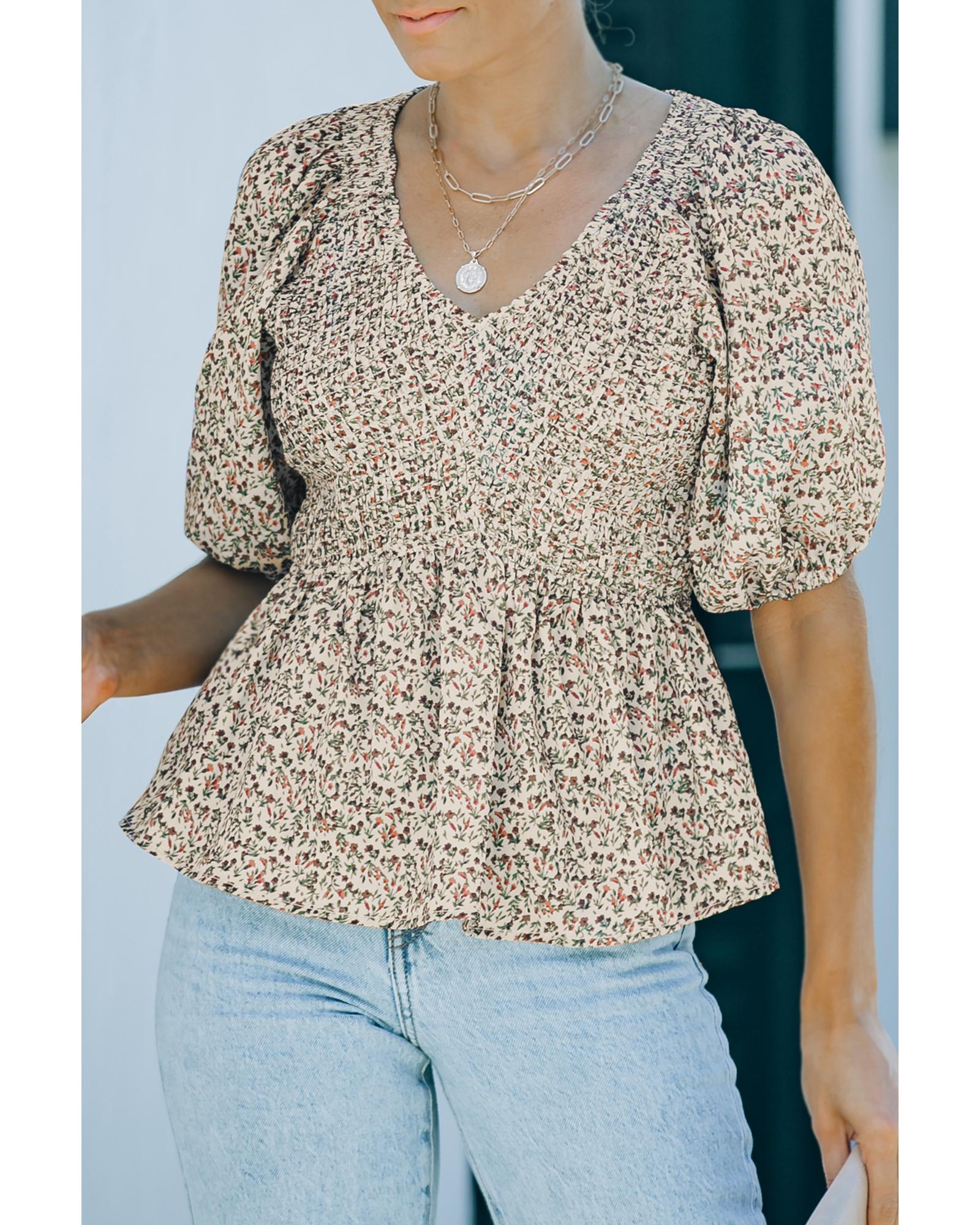 - Stylish and feminine Floral Print Puff Sleeve Smocked Top