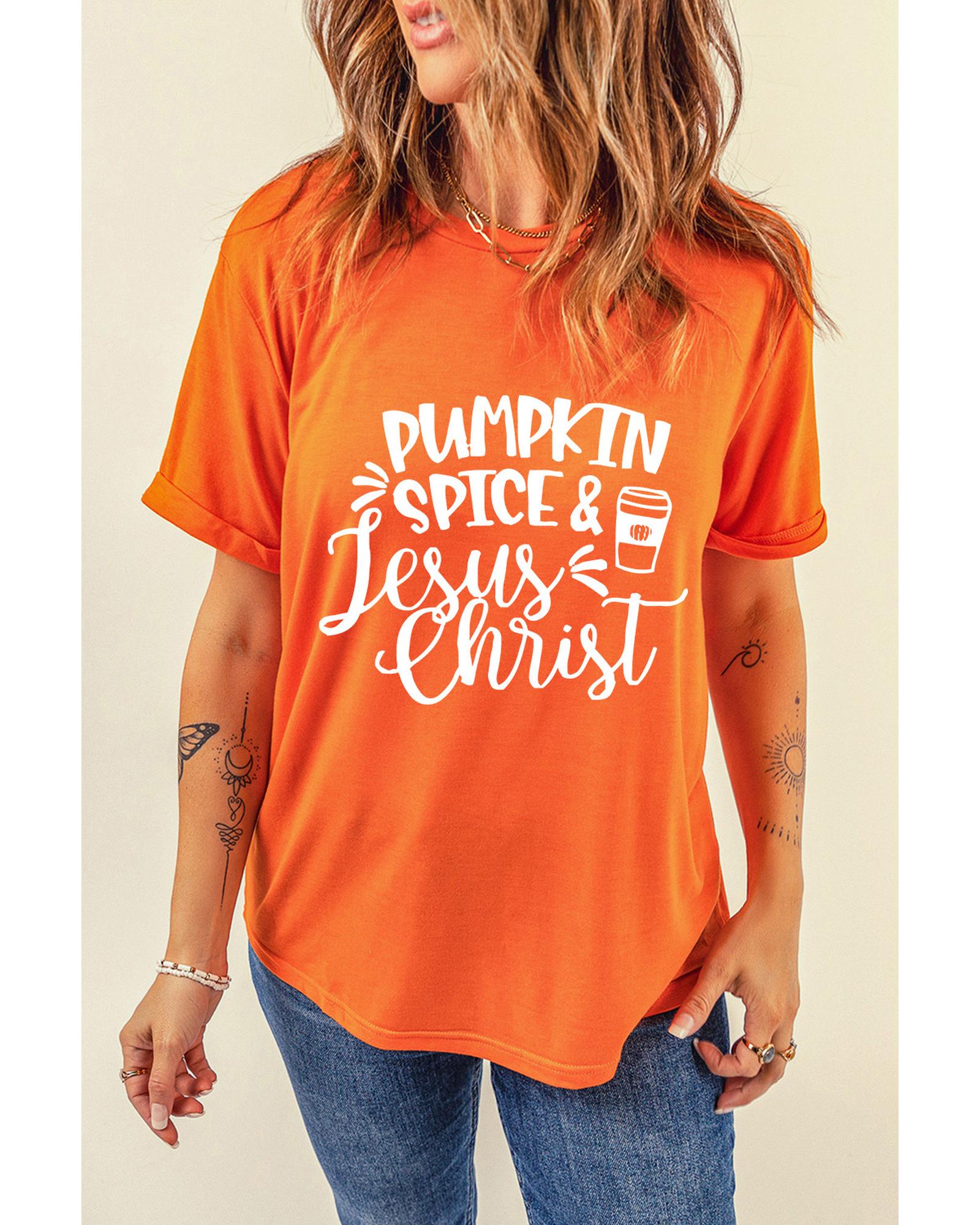 - Stylish and unique Orange PUMPKIN SPICE & Jesus Christ Graphic T-shirt