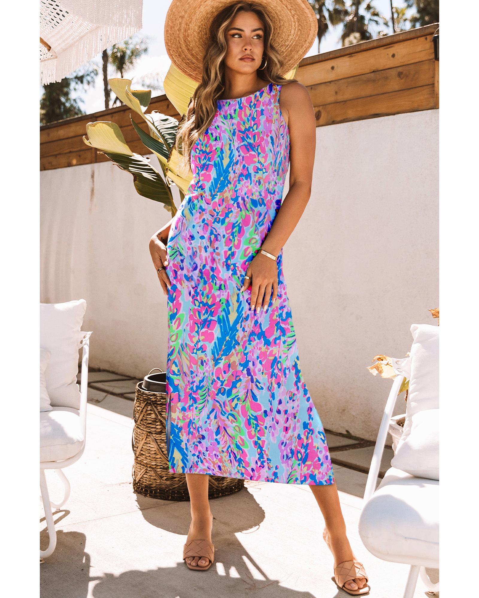 Azura Exchange Purple Abstract Floral Print Sleeveless Maxi Dress – M