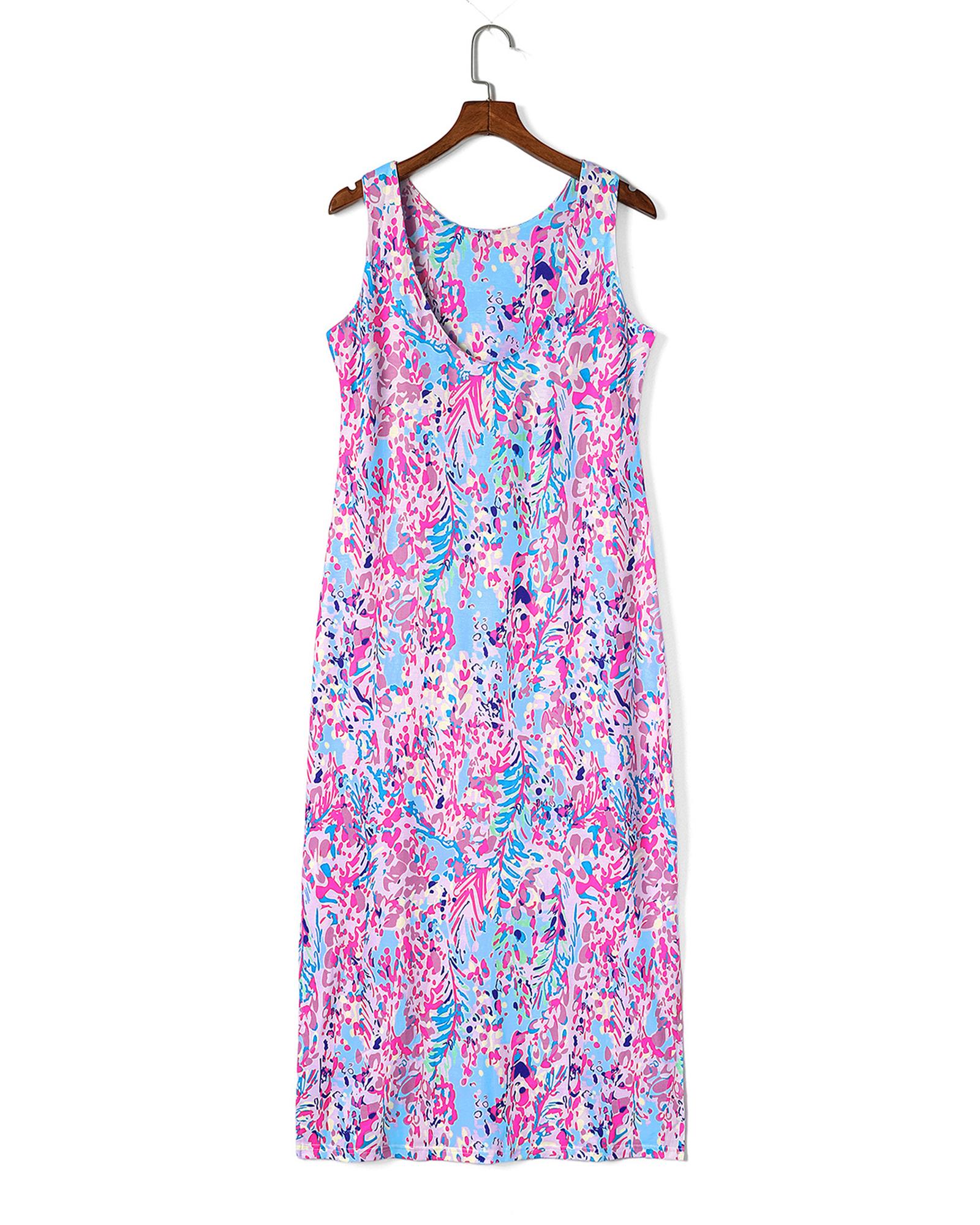 Azura Exchange Purple Abstract Floral Print Sleeveless Maxi Dress – XL