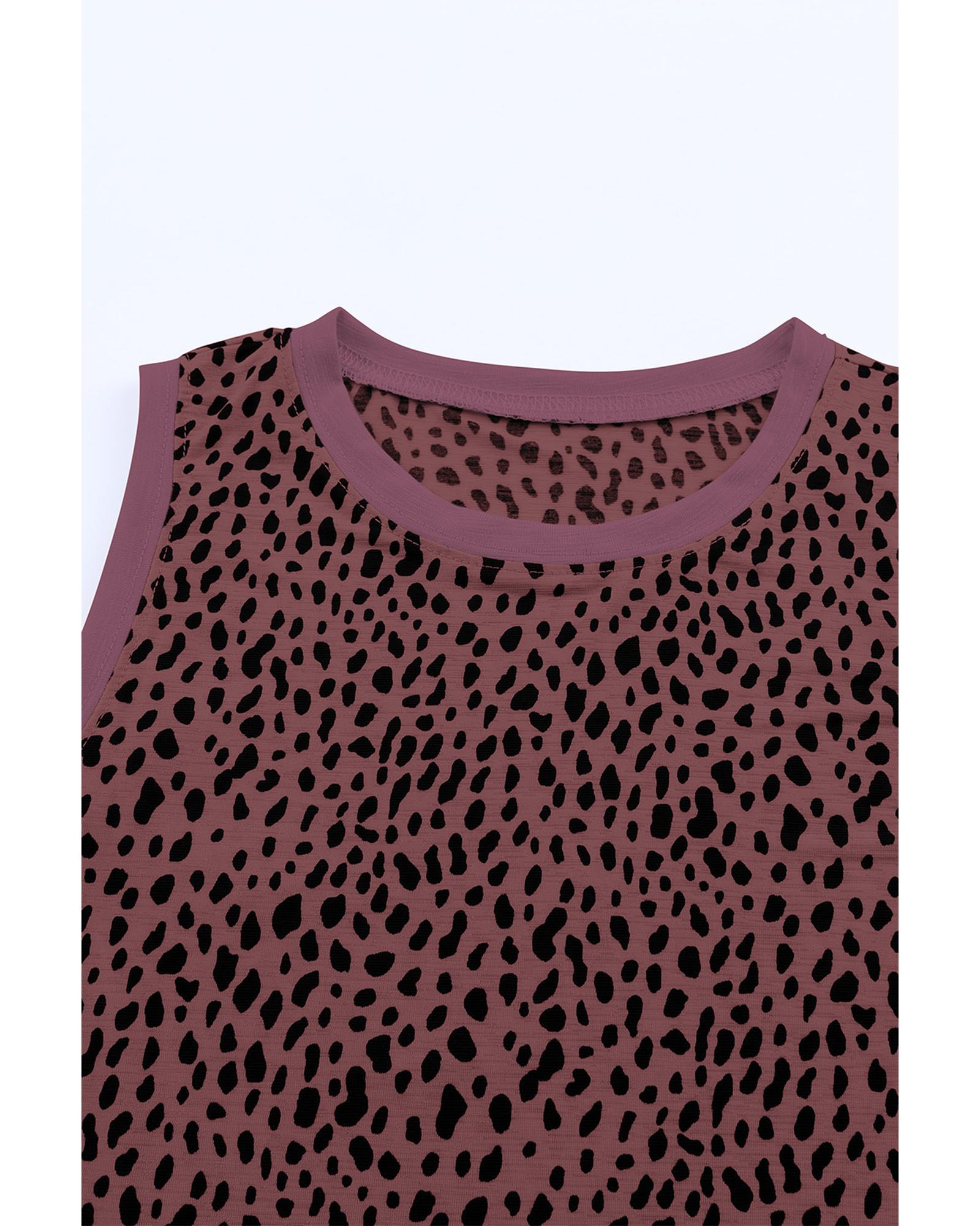 - Red Leopard Print Round Neck Tank Top