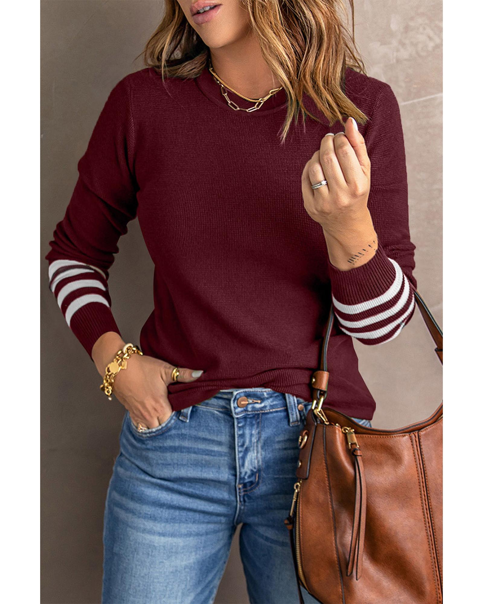 Azura Exchange Red Striped Sleeve Plain Knit Sweater – M