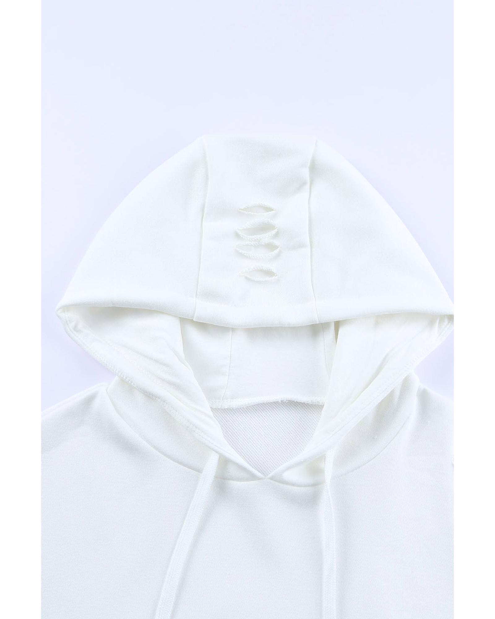Azura Exchange Ripped Hooded Sweatshirt with Kangaroo Pocket – S