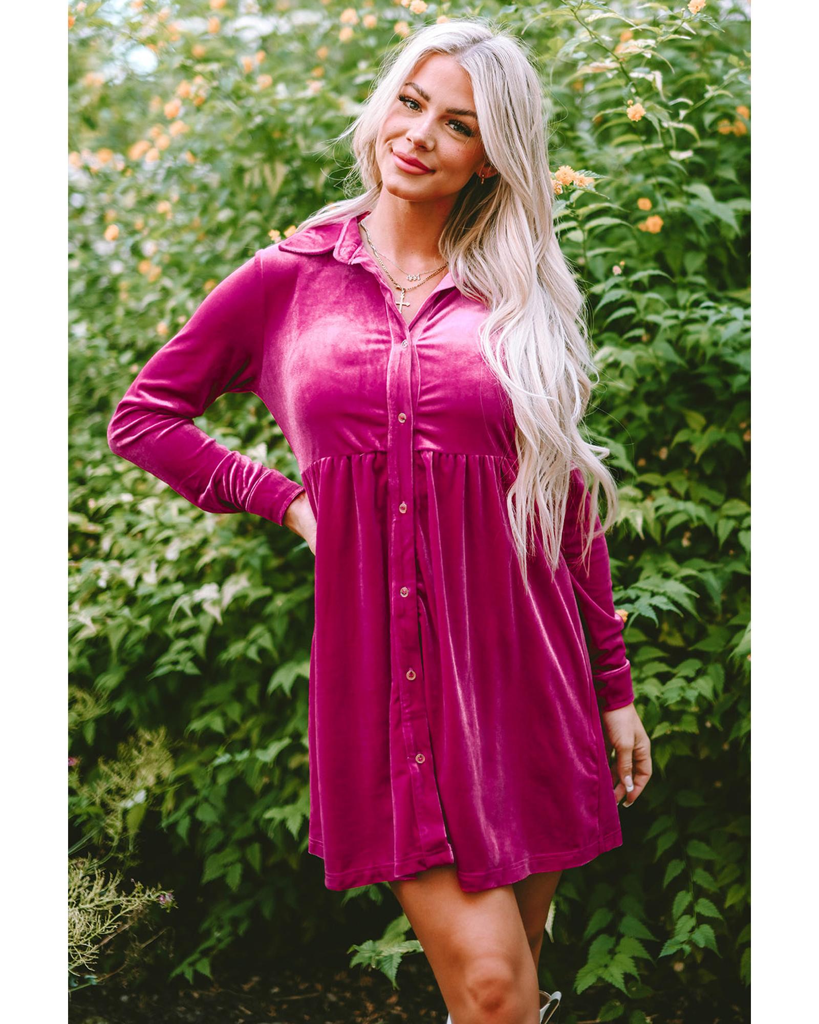 Azura Exchange Rose Long Sleeve Ruffle Velvet Button Up Dress – XL