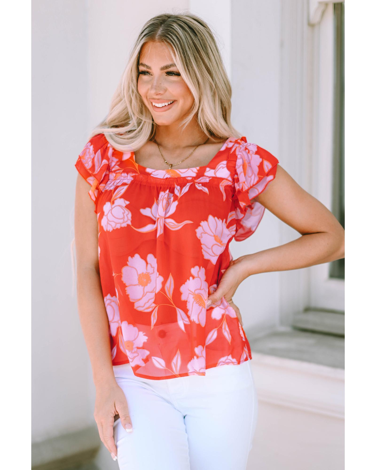 - Stylish and feminine Floral Square Neck Ruffle Sleeve Blouse