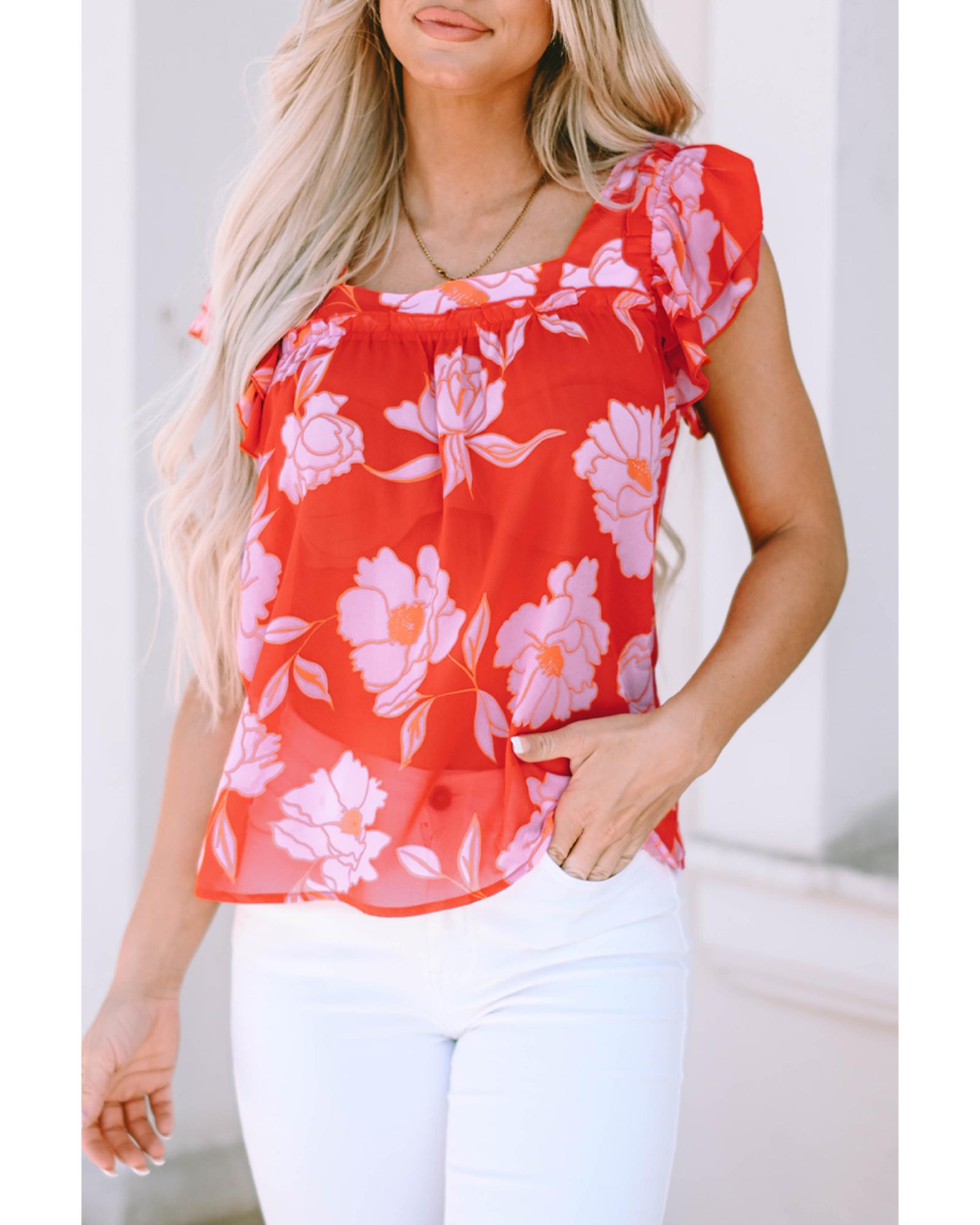 - Stylish and feminine Floral Square Neck Ruffle Sleeve Blouse