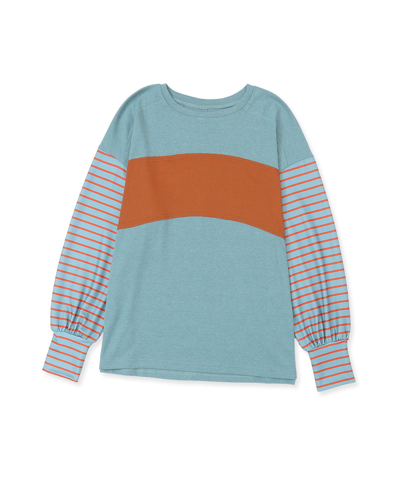 - Green Colorblock Striped Bishop Sleeve Top