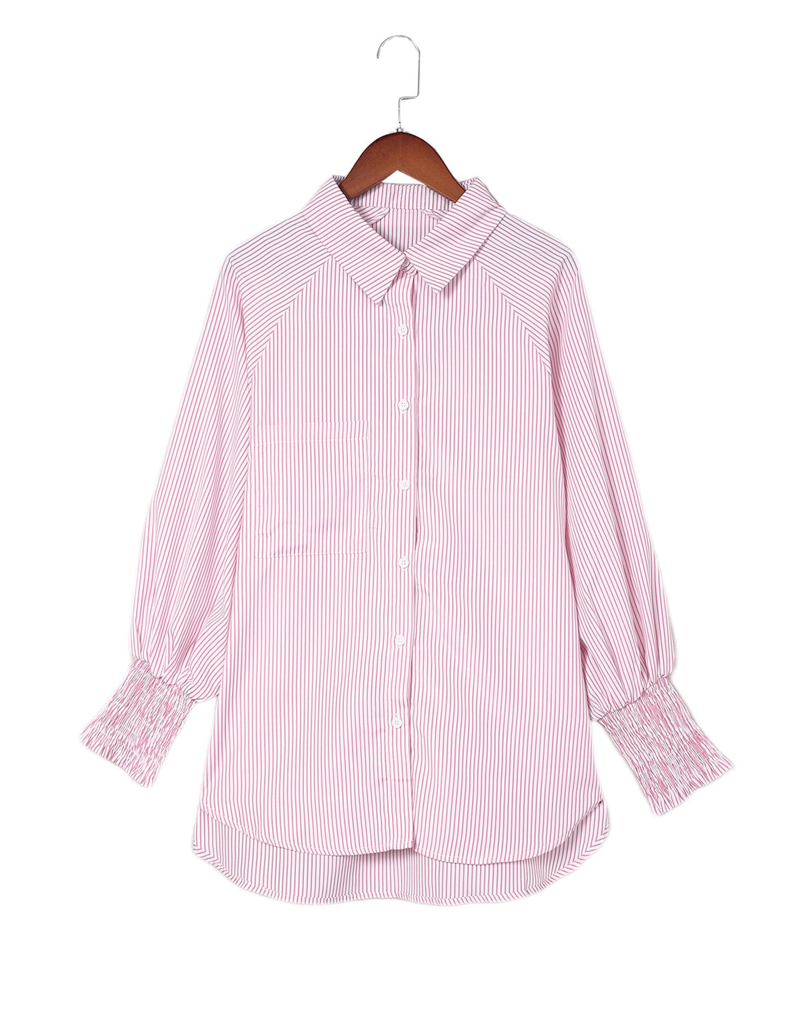 - Versatile and stylish Smocked Cuffed Striped Boyfriend Shirt with Pocket