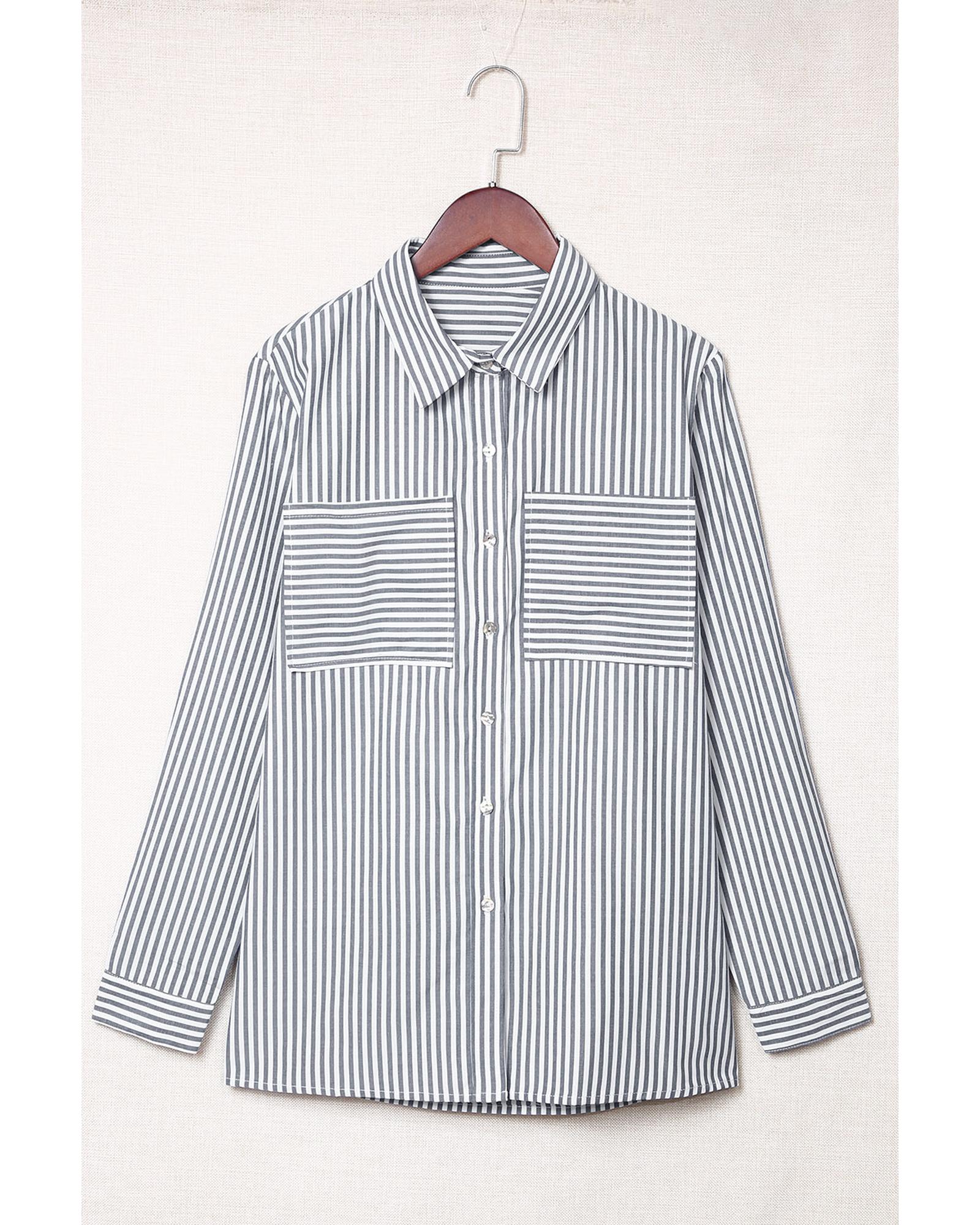 Azura Exchange Striped Long Sleeve Shirt with Pocketed Buttons – 2XL