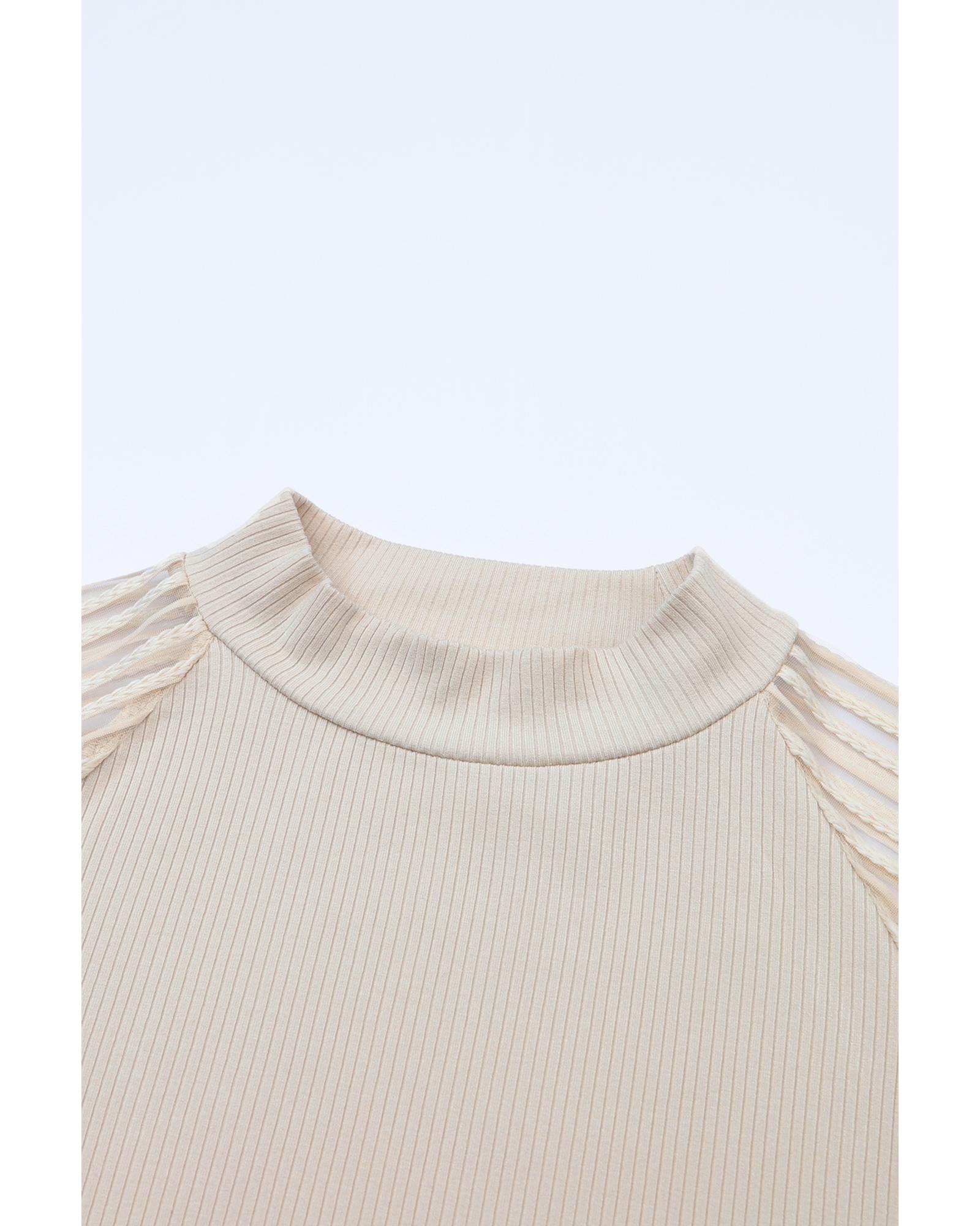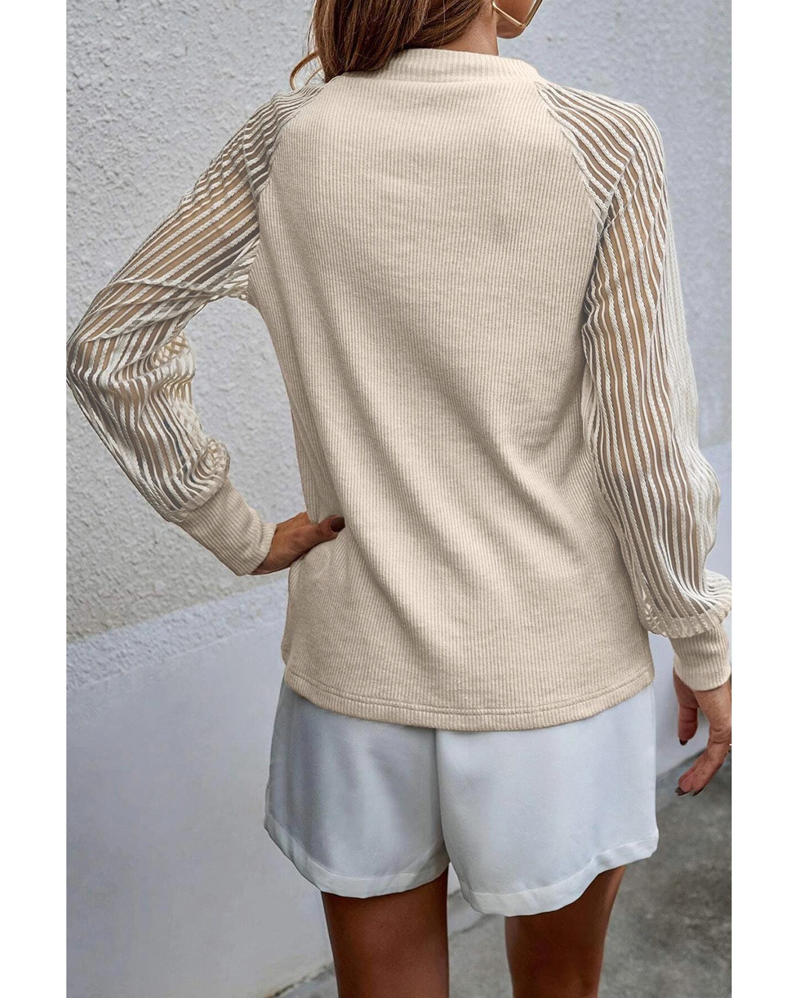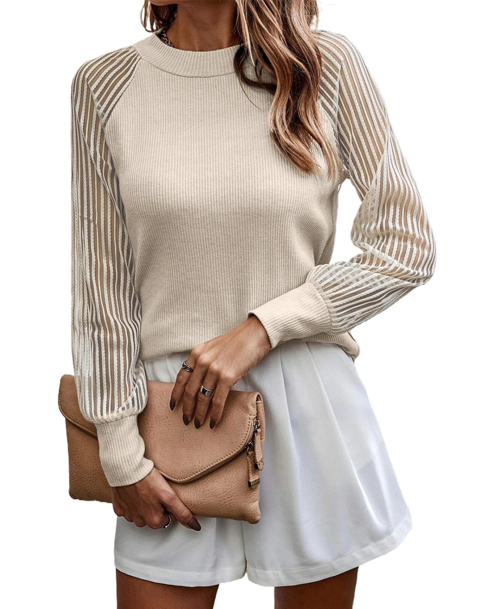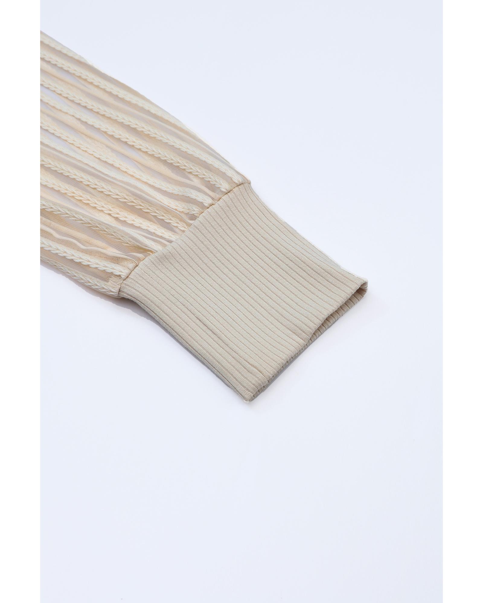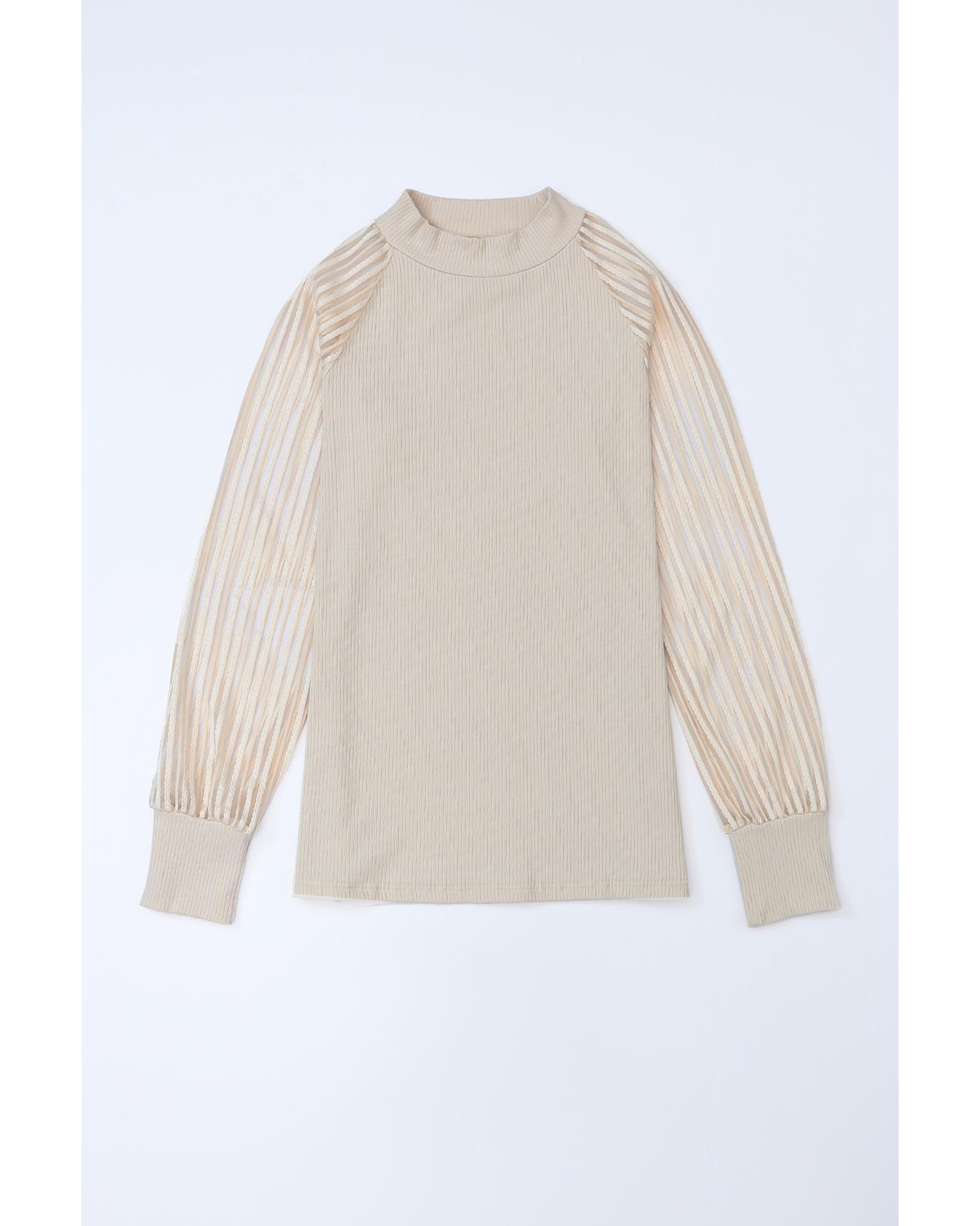 - Stylish and versatile apricot striped mesh long sleeve top